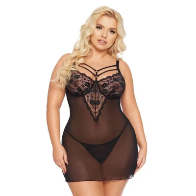 Koszulka koronkowa Aldona w kolorze czarnym, rozmiar 2XL, zmysłowy komplet z stringami