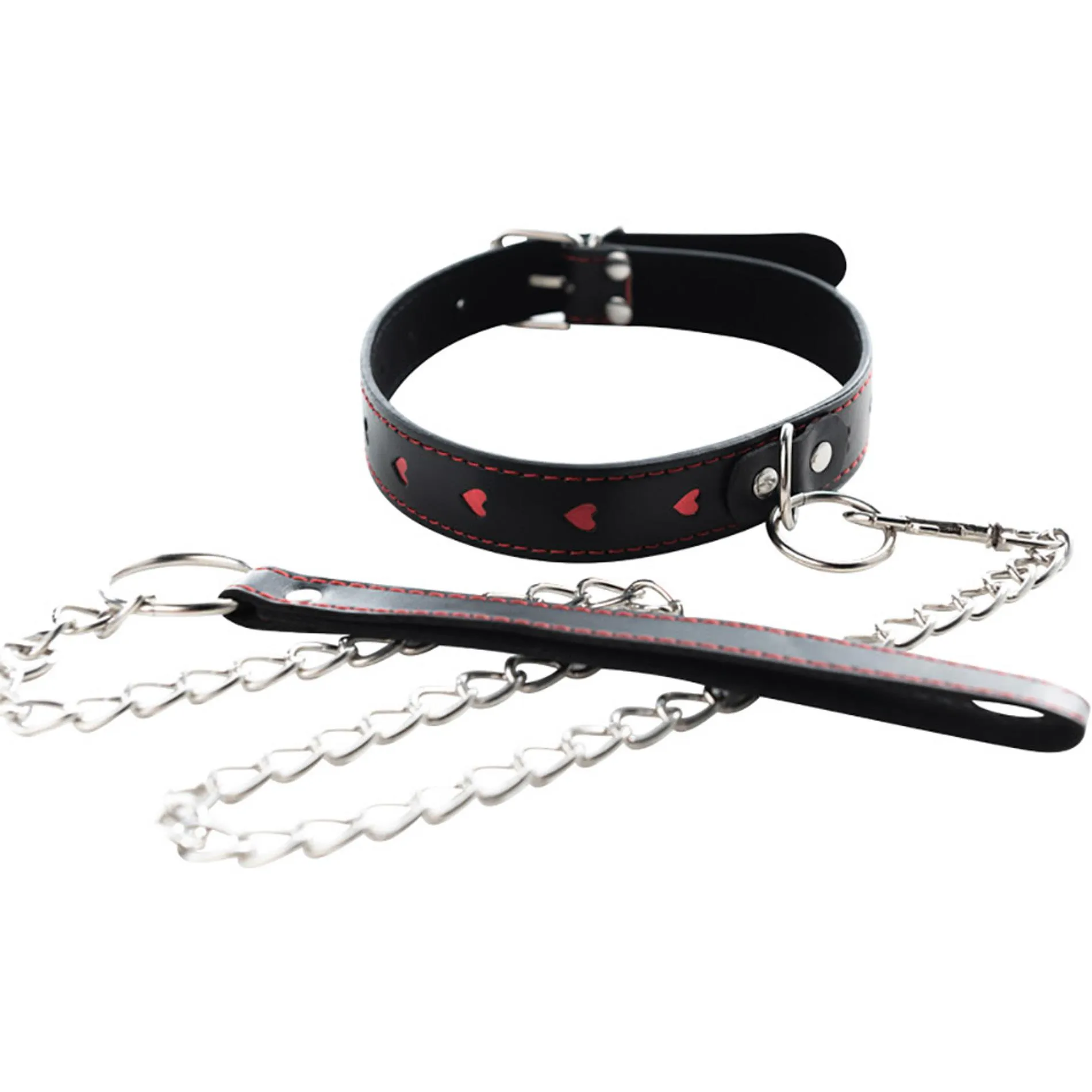 Obroża z odpinaną smyczą, regulowana, z PU leather, wolna od niklu, w kształcie serca