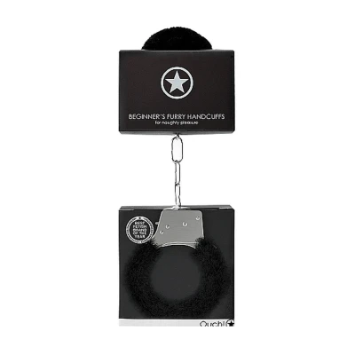 Kajdanki z futerkiem - Metalowe, dla początkujących, czarne - 28,5 x 7,5 x 1,5 cm