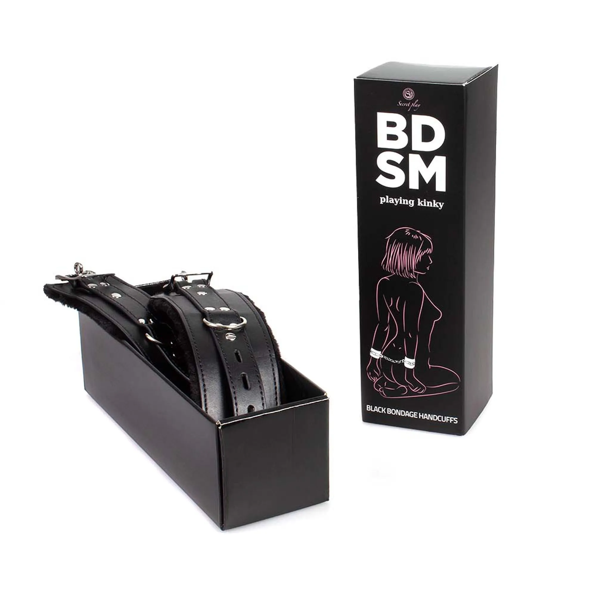 Kajdanki BDSM z syntetycznej skóry - wyściełane, regulowane, ze stali nierdzewnej