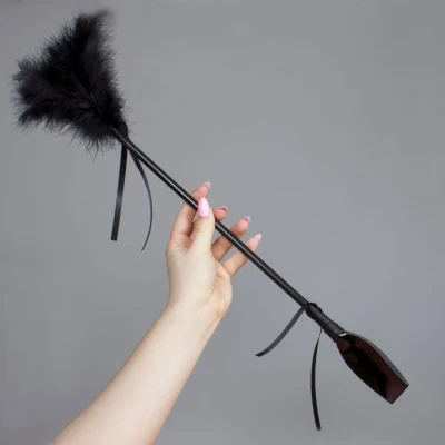 Zestaw do pobudzenia z piórkiem i szpicrutą w kolorze czarnym, 48 cm długości