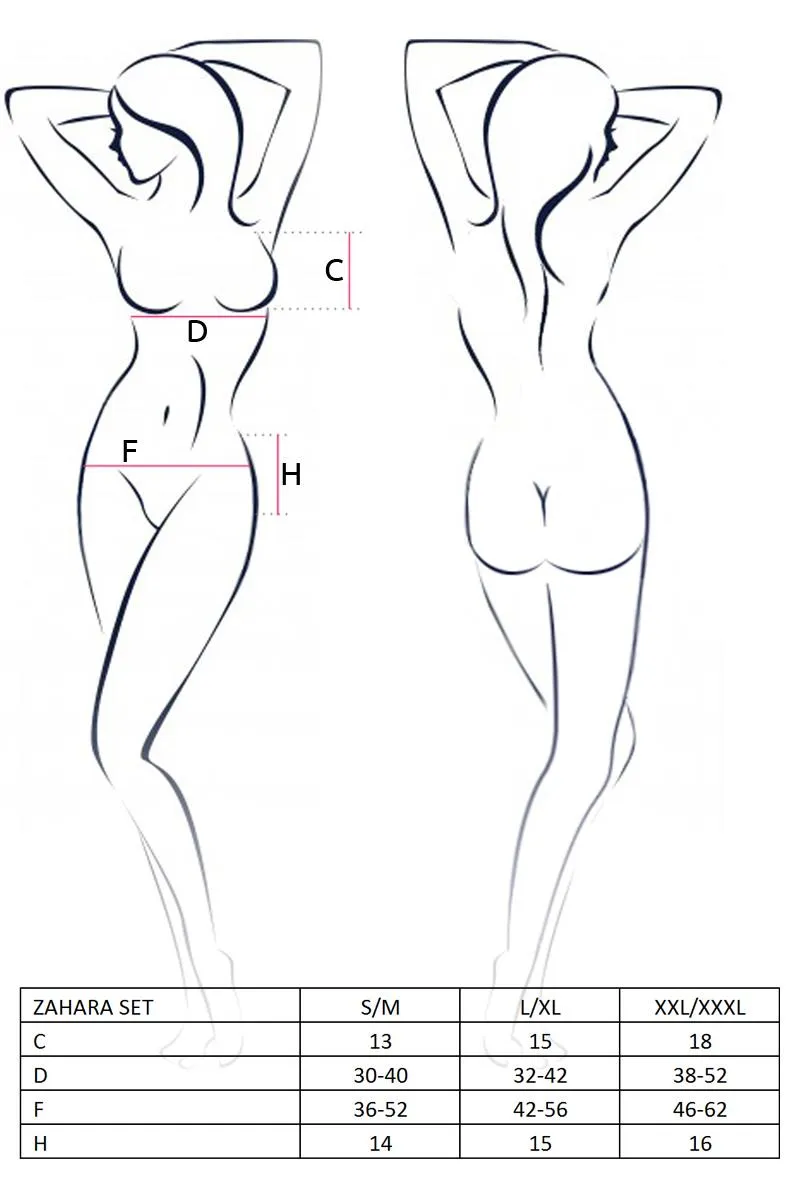 Regulowane ramiączka zapewniają doskonałe dopasowanie do sylwetki, co jest kluczowe dla maksymalnego komfortu noszenia. W zestawie znajdziesz specjalną gumę ramiączkową, która, podobnie jak w przypadku staników, doskonale trzyma bieliznę na miejscu, nie naruszając przy tym swobody ruchów. Dodatkowo, regulowane zapięcia do pończoch oraz pas wiązany z tyłu umożliwiają dostosowanie do indywidualnych potrzeb, a stringi dopełniają ten elegancki zestaw.