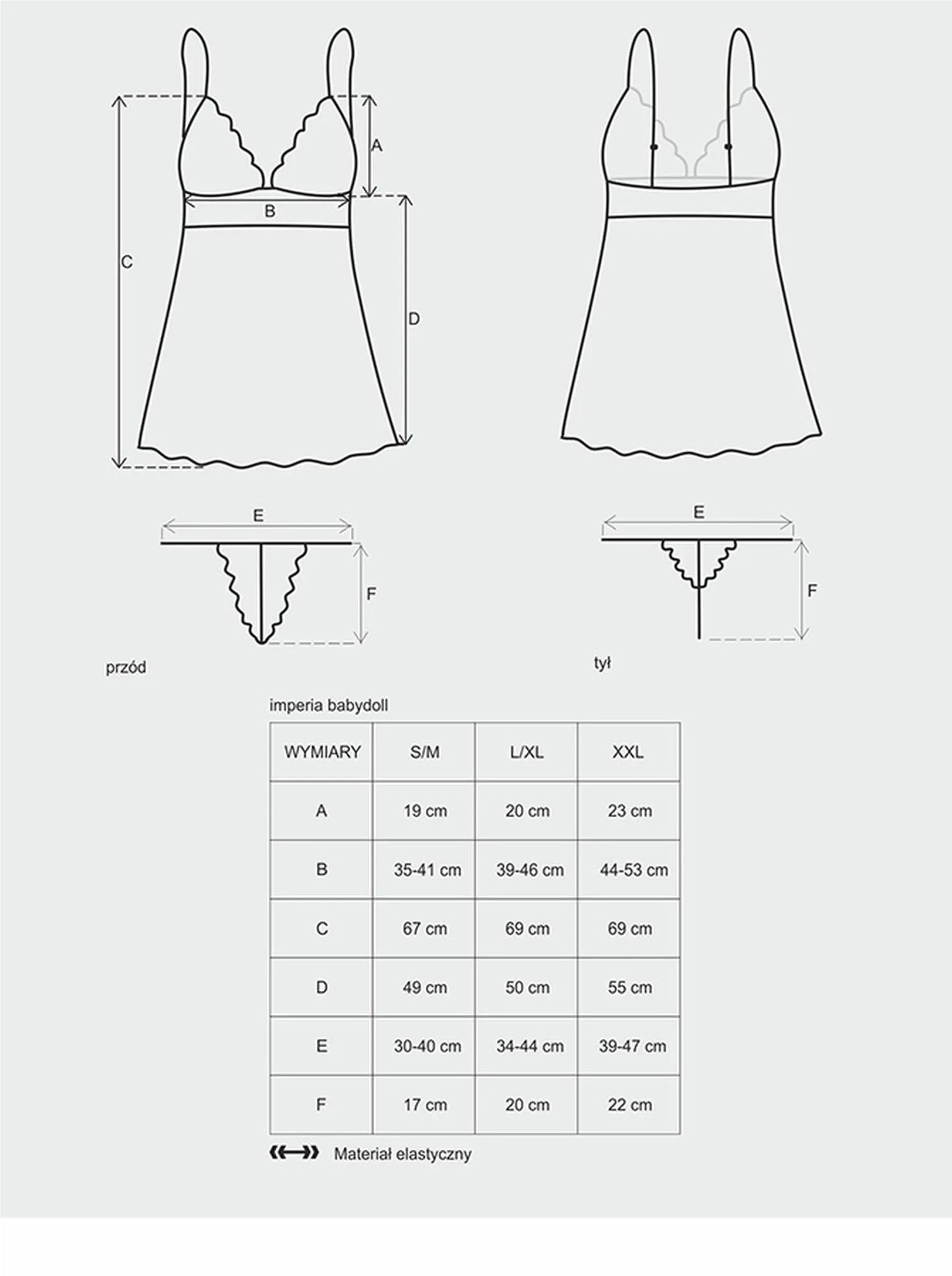 W skład zestawu wchodzą wygodne, regulowane ramiączka, które umożliwiają perfekcyjne dopasowanie do indywidualnych potrzeb każdej kobiety. Dzięki nim, halo babydoll perfekcyjnie układa się na ciele, oferując pełen komfort noszenia. Komplet uzupełniają stringi z pasującym koronkowym motywem, które dodają całości niepowtarzalnego uroku i sprawiają, że każda kobieta poczuje się wyjątkowo.