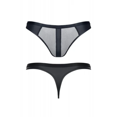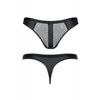 Majtki brazyliany REGaspar001 REGNES FETISH PLANET - XXL, elastyczny tiul, czarne, z otworem