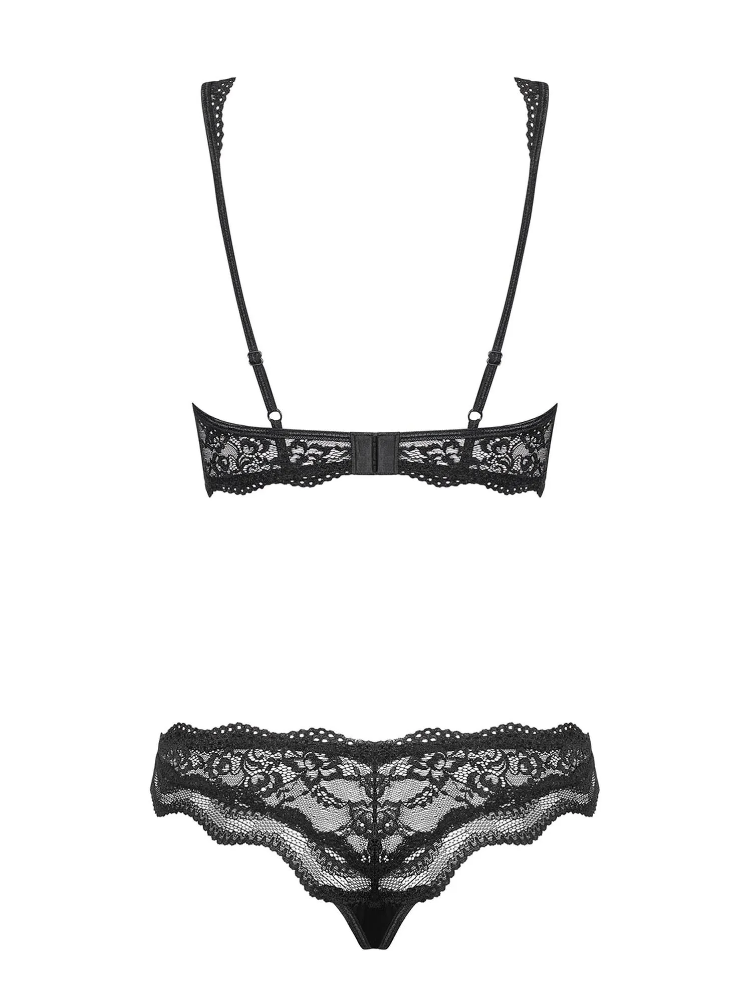 Przedstawiamy komplet Bielizna OBSESSIVE składający się z biustonosza i fig w eleganckim czarnym kolorze, doskonale dopasowany do rozmiaru S/M. Ten seksownie skrojony zestaw to połączenie stylu i komfortu, co czyni go idealnym wyborem na specjalne okazje lub na co dzień.