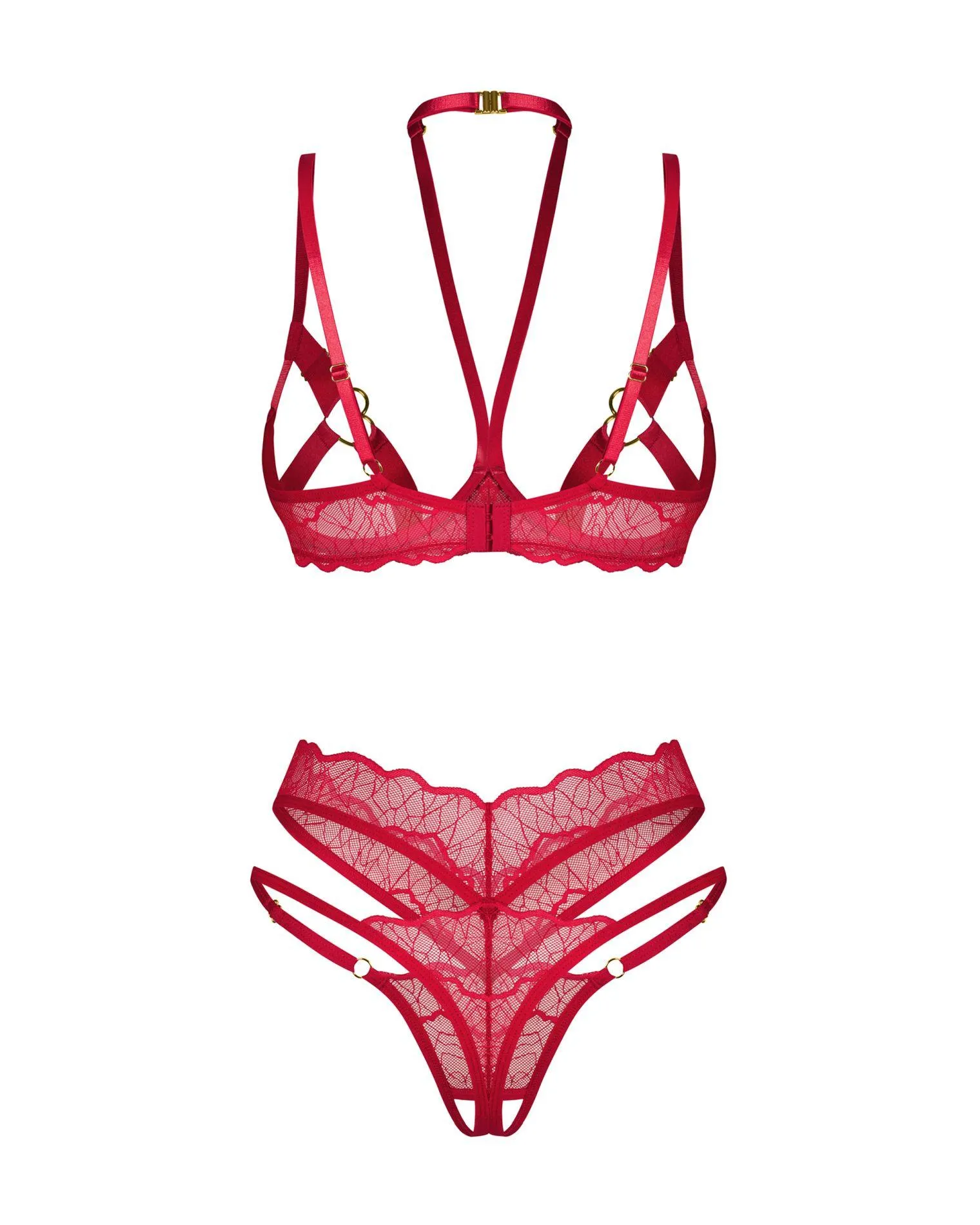 Odkryj komplet bielizny otwartej Cupide Desir, idealny dla kobiet, które poszukują odważnych i zmysłowych elementów do swojej garderoby. Ten zestaw dwuczęściowy składa się z eleganckiego biustonosza z regulowanymi ramiączkami oraz otwartych stringów, które podkreślają kobiece kształty. Czerwony kolor zestawu to doskonały wybór na romantyczne wieczory, dodający pewności siebie i uwodzenia.