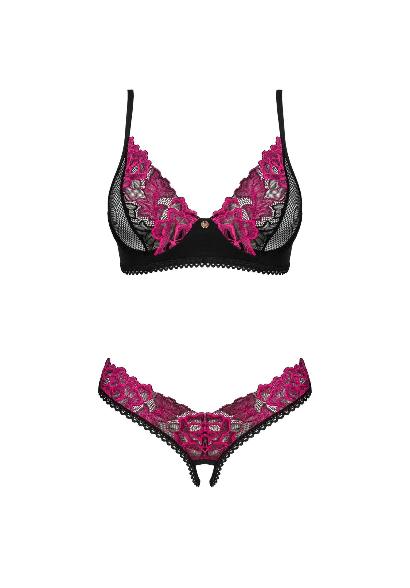 Odkryj zestaw bielizny otwartego kroku Rosenty XL/2XL, który wprowadza na nowo definicję seksownej elegancji. Ten niezwykły zestaw z pewnością podkreśli Twoją kobiecość i umożliwi Ci wyrażenie swojej wewnętrznej drapieżności. Regulowane ramiączka zapewniają idealne dopasowanie, a subtelny haft różany dodaje całości romantycznego charakteru, zaskakując każdego, kto na Ciebie spojrzy.