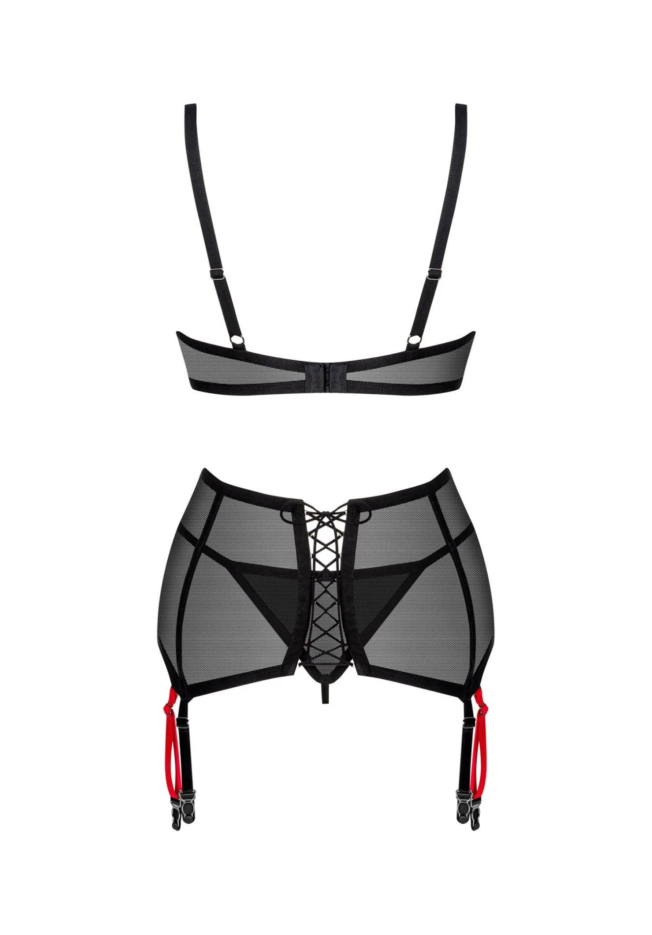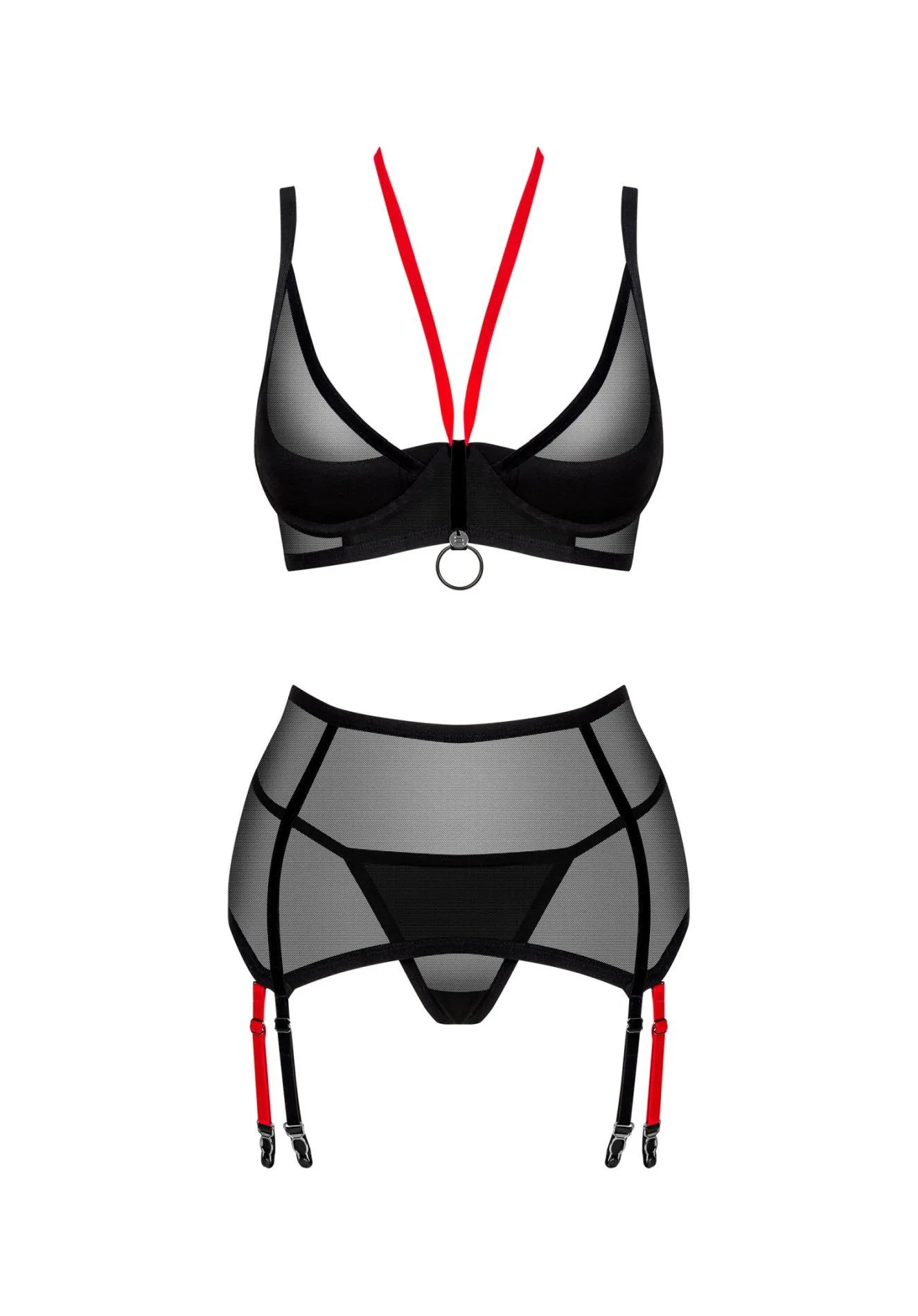 Inwestując w ten zmysłowy komplet, otrzymujesz nie tylko atrakcyjny wygląd, ale także funkcjonalność. W zestawie znajduje się: