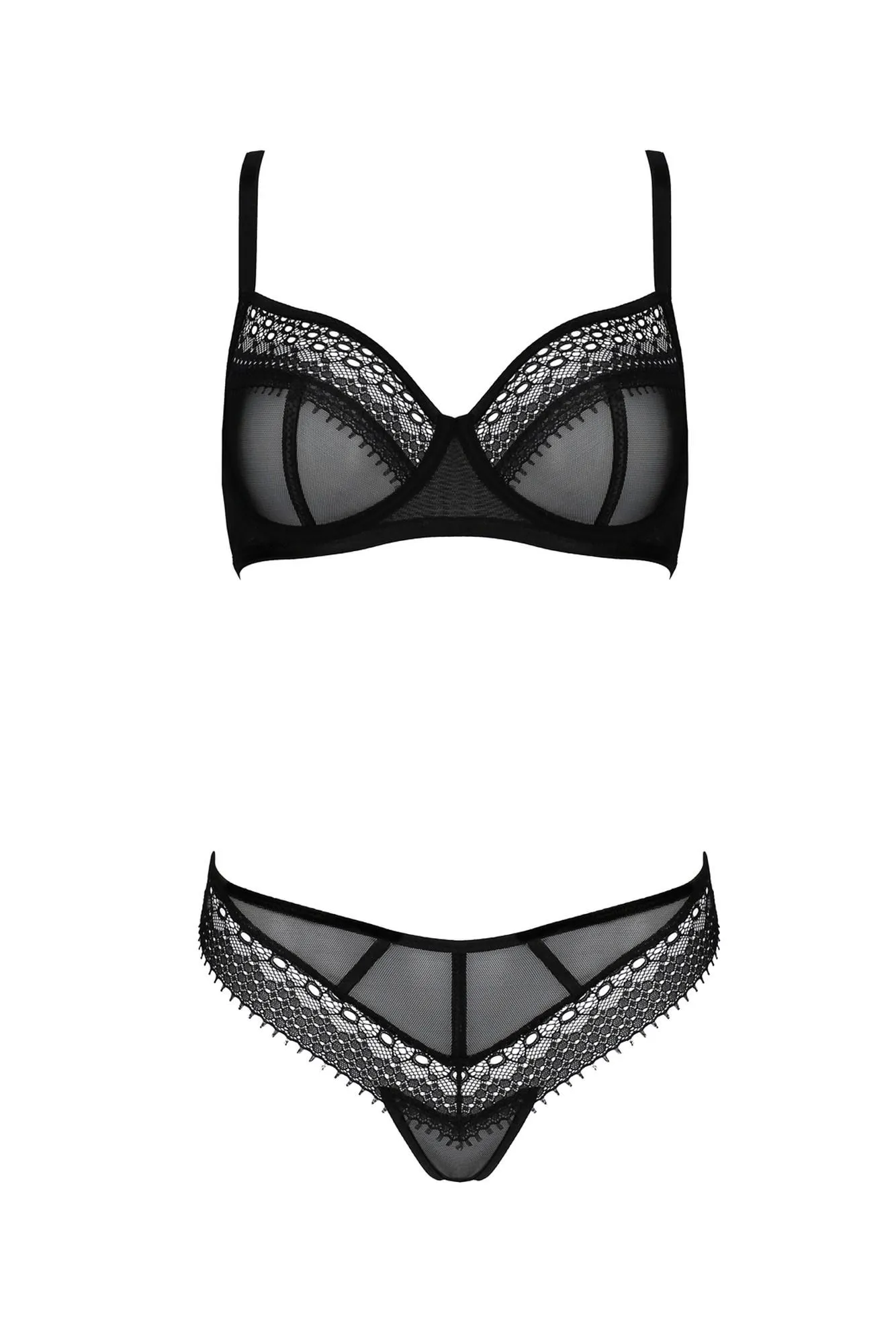Odkryj biustonosz i stringi DENERYS od renomowanej marki Casmir, które łączą w sobie zmysłowość i elegancję. Wykonane z czarnego tiulu, ten bikini w rozmiarze S/M przyciąga uwagę subtelnym stylem oraz wyjątkowym designem, idealnie podkreślającym kobiece kształty. Czarująca koronka i delikatne paseczki sprawiają, że jest to komplet, w którym poczujesz się zarówno komfortowo, jak i wyjątkowo.