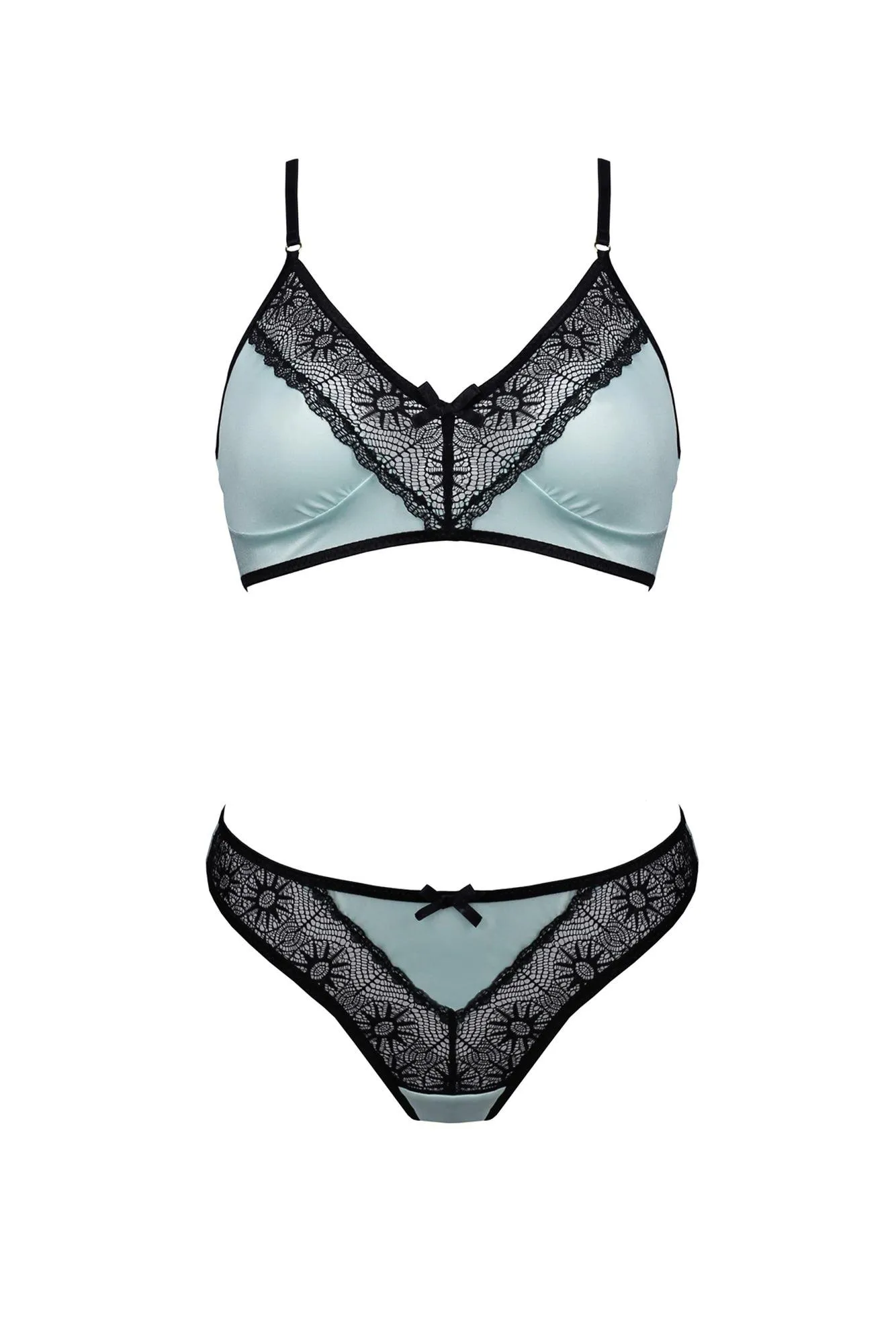 Bikini SIDRA to wyjątkowy komplet, który łączy w sobie seksowną elegancję oraz niesamowity komfort. Wykonany z miętowej satyny, ten zestaw z dodatkiem czarnej koronki doskonale podkreśla atuty każdej sylwetki. Regulowane ramiączka oraz wygodne zapięcie na haftki zapewniają idealne dopasowanie, dzięki czemu możesz czuć się pewnie i komfortowo przez cały dzień.