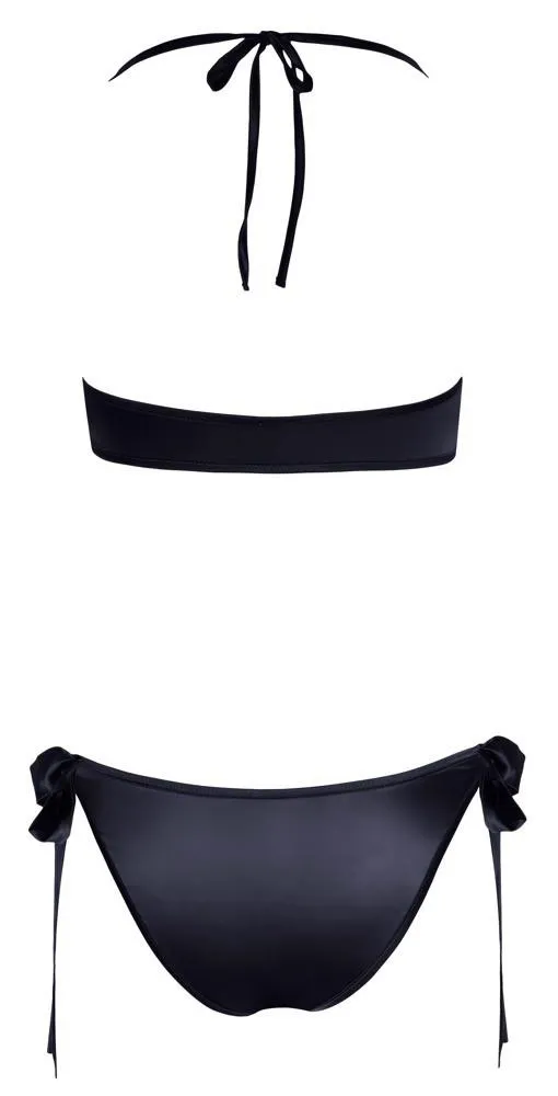 Biustonosz z halterneckiem do wiązania oraz z kokardką między miseczkami umożliwia indywidualne dostosowanie do sylwetki. Z kolei majtki z wiązanymi kokardkami po bokach podkreślają kształty, co zapewnia nie tylko atrakcyjny wygląd, ale również wygodę noszenia. Ten zestaw bielizny to idealne połączenie seksapilu z elegancją.
