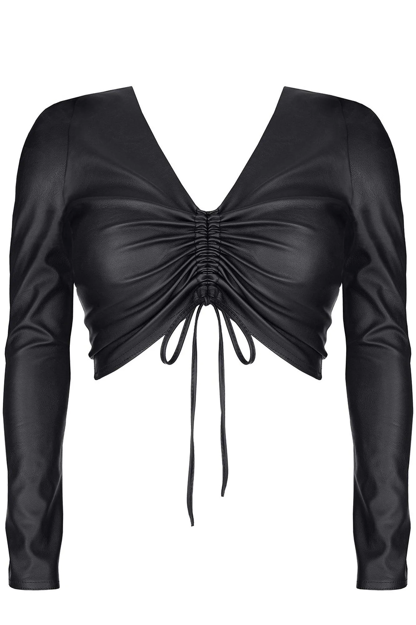 Bluzka ekoskórzana ADRIANA001 to wyjątkowy model, który wyróżnia się efektownym dekoltem oraz długimi rękawami, co czyni ją idealnym wyborem na wiele okazji. Dzięki elastycznemu, miłemu w dotyku materiałowi z ekoskóry, ta bluzka nie tylko świetnie wygląda, ale też zapewnia komfort noszenia. Oferuje możliwości personalizacji dekoltu dzięki sznureczkom ściągającym, co pozwala na podkreślenie sylwetki zgodnie z indywidualnym stylem.