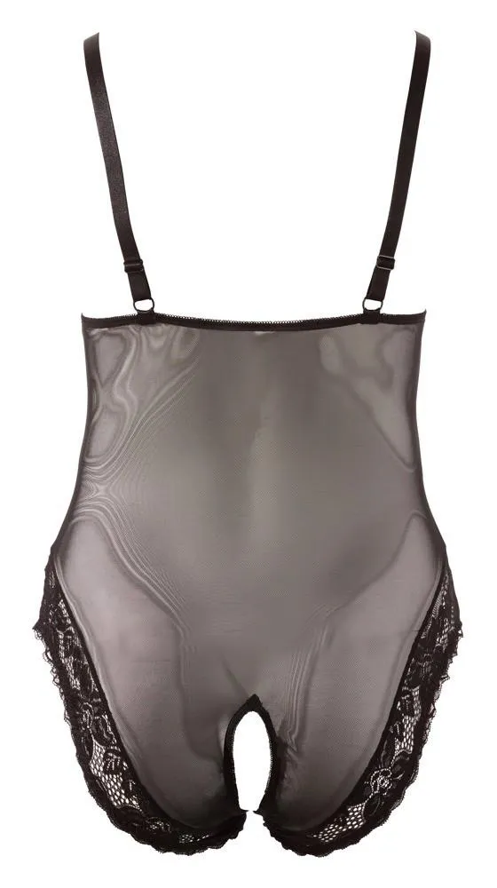 Body wyróżnia się regulowanymi paskami, które pozwalają dopasować produkt do indywidualnych potrzeb. Zastosowanie delikatnych detali koronkowych w kwiatowym wzorze dodaje mu uroku oraz kobiecości. Te subtelne akcenty znajdują się zarówno na miseczkach, jak i w okolicy nóg, co czyni cały strój wyjątkowym i eleganckim. Zarówno przód, jak i tył body zdobią eleganckie elementy koronkowe, które wpływają na jego wyjątkowy charakter.
