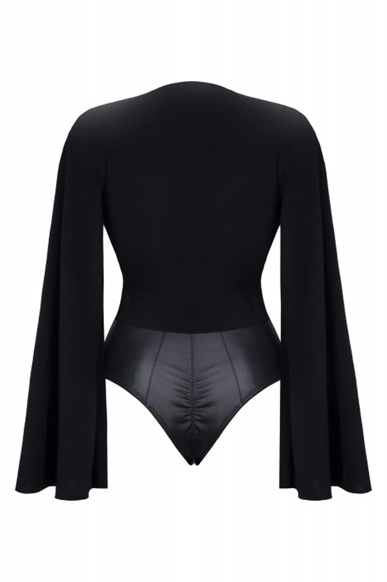 Odkryj Body ALEXIS 001, które łączy w sobie elegancję, szyk oraz energię. To niezwykłe body w kolorze czarnym zostało zaprojektowane z myślą o kobietach, które cenią sobie zarówno komfort, jak i zmysłowy wygląd. Jego wyróżniający się głęboki dekolt oraz długie, otwarte ramiona przyciągają wzrok, a jednocześnie wyrażają pewność siebie.