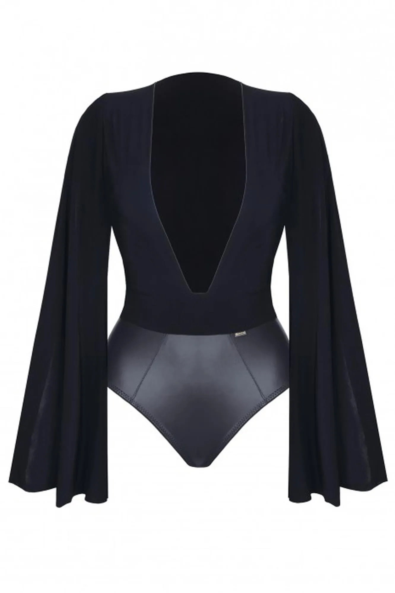 Body ELITE-ALEXIS001 to połączenie elegancji, szyku i energii, które z pewnością przyciągnie spojrzenia. Ten unikalny model wyróżnia się długimi, otwartymi ramionami oraz intrygująco głębokim dekoltem, co sprawia, że staje się idealnym wyborem na eleganckie wyjścia i wyjątkowe okazje. Wykonane z dwóch różnych materiałów, body łączy w sobie komfort oraz styl, tworząc niezwykle zjawiskowy element garderoby.