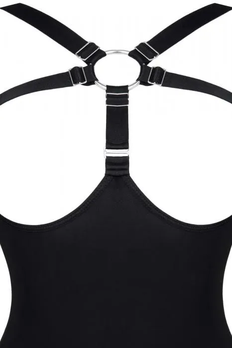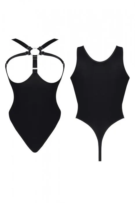 Wysoko profilowane wycięcie na biodrach zmysłowo podkreśla linię pośladków i bioder, co sprawia, że body idealnie modeluje sylwetkę. Dzięki różnorodnym regulatorom, możliwe jest precyzyjne dopasowanie do indywidualnych potrzeb, co przekłada się na jej wyjątkową funkcjonalność. Użyte materiały cechują się wysoką jakością, a metalowe elementy są wolne od chromu i niklu, co minimalizuje ryzyko podrażnień skóry.