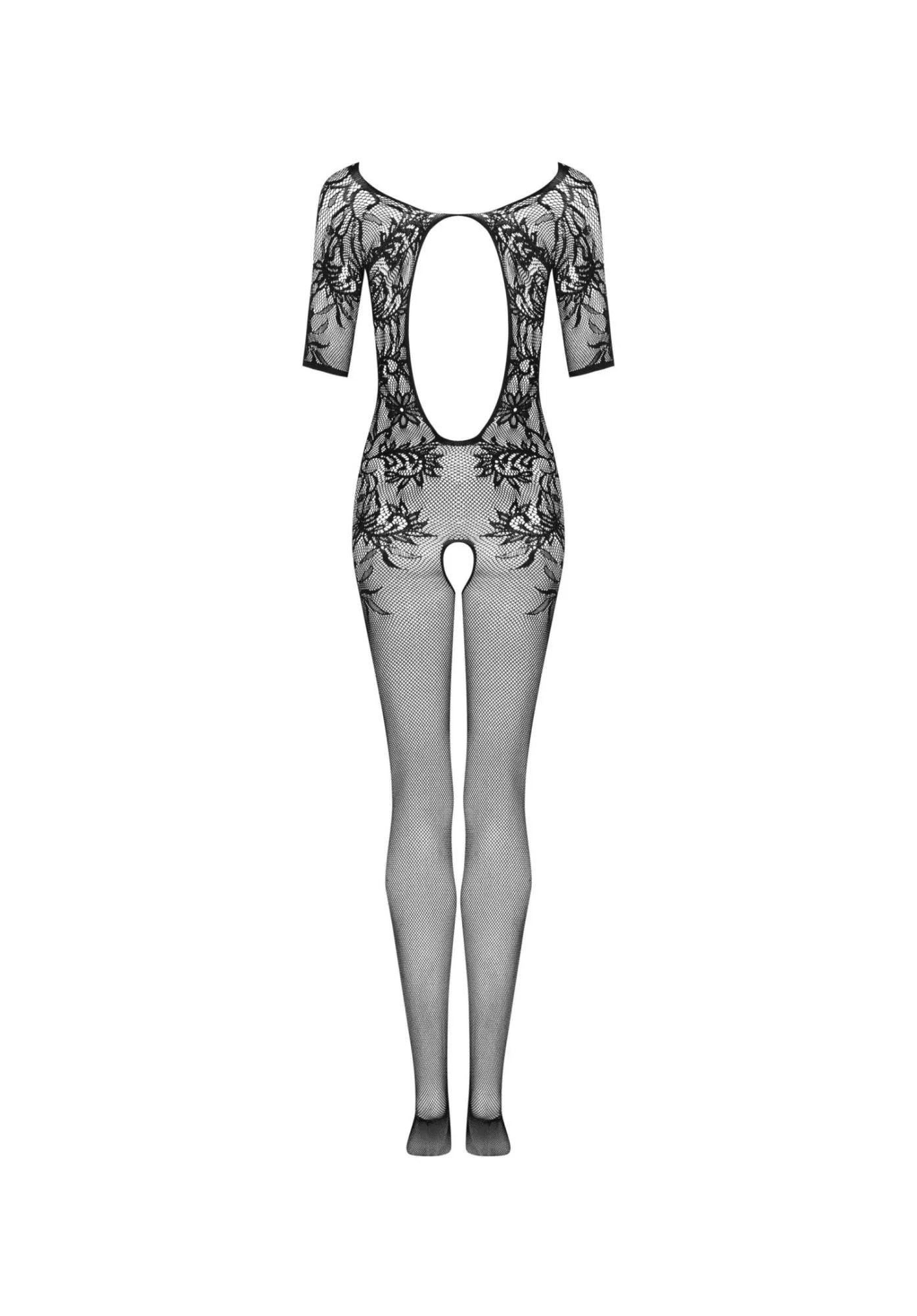Odkryj niezwykły bodystocking F238, który łączy w sobie zmysłowość oraz elegancję. Wykonany z czarnej siateczki z delikatnym, kwiatowym motywem, ten produkt z pewnością przyciągnie uwagę. Rękaw o długości 3/4 oraz krzyżujące się na piersiach i brzuchu paseczki podkreślają atuty sylwetki, a wycięte plecy dodają mu niepowtarzalnego charakteru. Otwarty krok sprawia, że bodystocking jest nie tylko stylowy, ale również funkcjonalny, co czyni go idealnym wyborem na romantyczne wieczory.