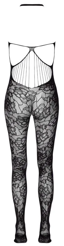 Ten catsuit bez pleców charakteryzuje się zmysłowym wzorem kwiatowym oraz wyjątkowym wycięciem w dekolcie, które dodatkowo uwydatnia piękno ciała. Halterneck oraz elastyczne paski przy plecach zapewniają idealne trzymanie, a wycięcie w kroku sprawia, że jest to model nie tylko sexy, ale i praktyczny. Wzmocniona część palców oraz szwy podkreślają dbałość o detale i jakość wykonania.