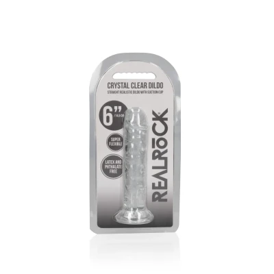 Dildo REALROCK CRYSTAL CLEAR - 6,1''/15,5 cm, przyssawka, bez ftalanów, wodoodporne