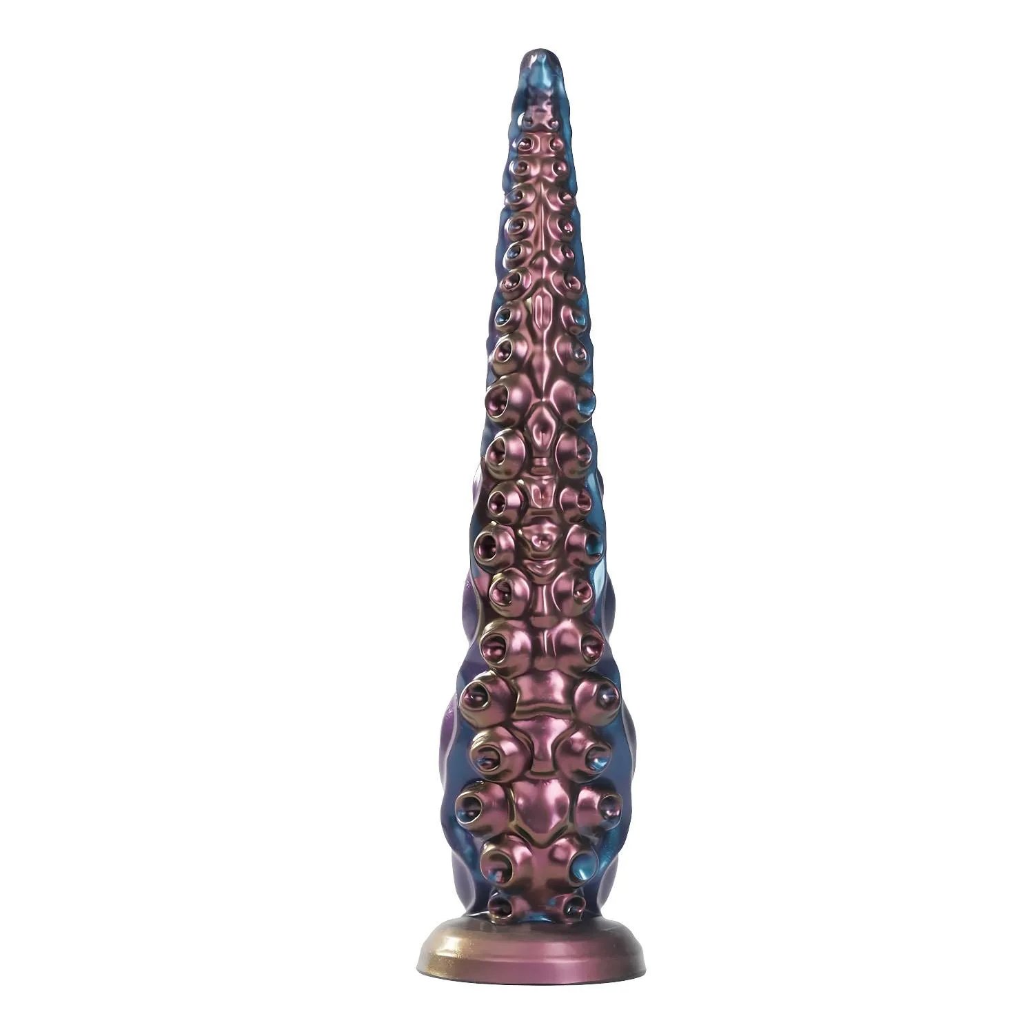 Jego delikatne tekstury przechodzą kaskadowo od podstawy po czubek, co zapewnia wyjątkowe wrażenia dotykowe. Dodatkowo, gradient kolorów, który płynnie przechodzi od głębokiego błękitu do zmysłowego fioletu, wzbogaca wizualny aspekt zabawki. Dildo Power Monsters Maelstrom to doskonały wybór dla osób, które pragną połączyć piękno z intensywnością doznań.