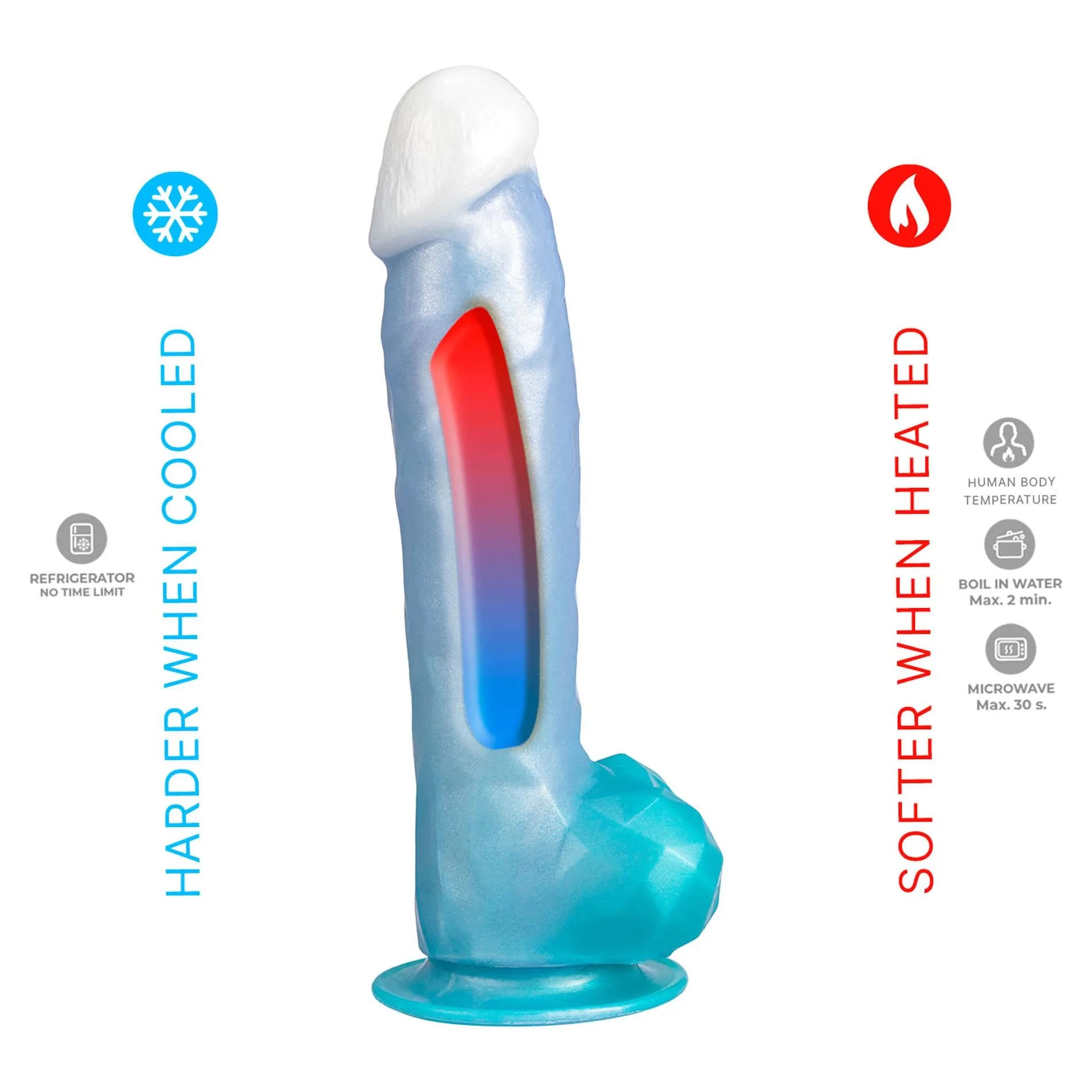 Dildo SILEXD Angel to innowacyjne dildo o długości 8 cali, które zaspokoi Twoje pragnienia dzięki termoreaktywnej technologii. Takie rozwiązanie sprawia, że produkt reaguje na zmiany temperatury, co pozwala na pełną personalizację doznań. Wykonane z płynnego silikonu z rdzeniem SILEXPAN, dildo charakteryzuje się wyjątkowo naturalnymi odczuciami oraz możliwością dostosowania jego twardości. Dzięki temu możesz użyć mikrofalówki, by osiągnąć większą miękkość lub schłodzić produkt w zamrażarce dla intensywniejszej stymulacji.