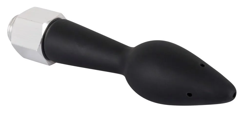 Douche analna BlackSilk została wykonana z wysokiej jakości silikonu z poliuretanową powłoką oraz metalu, co gwarantuje nie tylko trwałość, ale i zmysłowe doznania. Wystarczy przykręcić wąż pod prysznicem do gwintu śruby, aby cieszyć się komfortowym i intensywnym oczyszczeniem. Produkt charakteryzuje się pięcioma otworami, z których jeden znajduje się w końcówce korka, co pozwala na regulację strumienia wody w zależności od indywidualnych preferencji i potrzeb użytkownika.