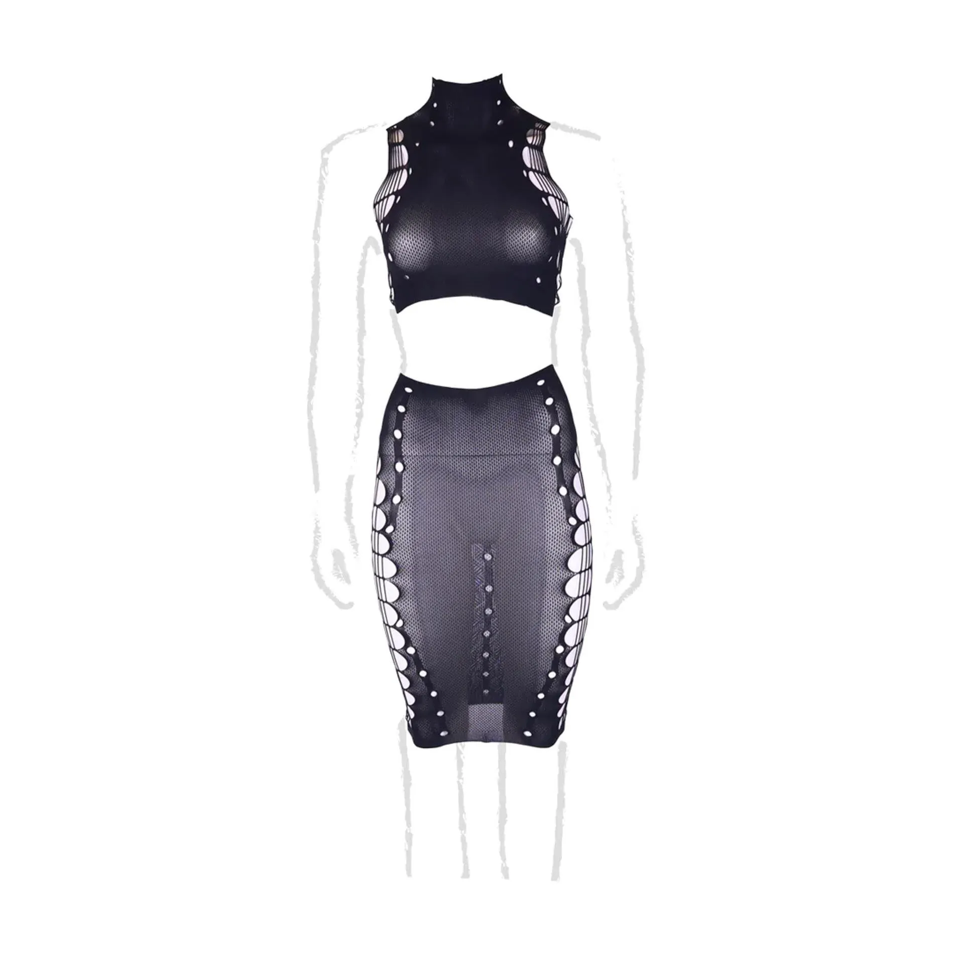 Dwuczęściowy komplet - Kala XXXVII to doskonałe połączenie elegancji i komfortu, które z pewnością przyciągnie uwagę w każdej sytuacji. W skład kompletu wchodzi crop top oraz spódniczka, które wyróżniają się nowoczesnym designem i unikalnymi detalami. Z przodu elementy te prezentują się zmysłowo i stylowo, a boki odsłaniają atrakcyjne wycięcia, które idealnie podkreślają atuty sylwetki. Ta wyjątkowa kombinacja sprawia, że każda stylizacja staje się niepowtarzalna.