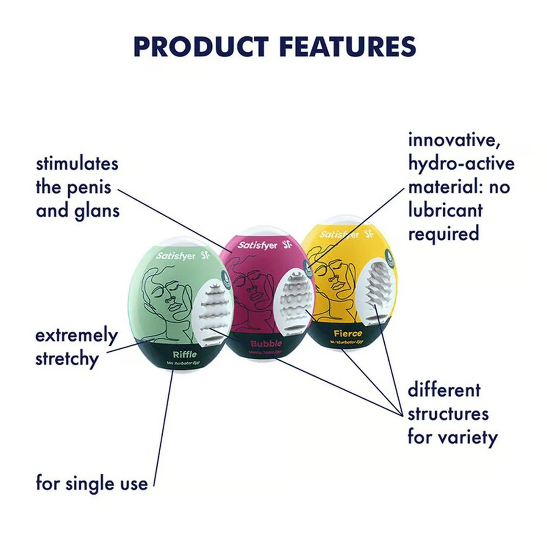 Jajka Eggcited to innowacyjny zestaw 3 sztuk, zaprojektowany z myślą o osobach poszukujących intensywnych doznań podczas masturbacji. Wykonane z hydroaktywnego tworzywa TPE oraz ABS, te produkty cechują się niezwykłą elastycznością i gładkością, co pozwala na komfortowe użytkowanie. Zewnętrzne wymiary wynoszą 5,2 cm średnicy oraz długości 6,5 cm, co sprawia, że są idealnie dopasowane do kształtu penisa, zapewniając stymulację trzonu i czubka.
