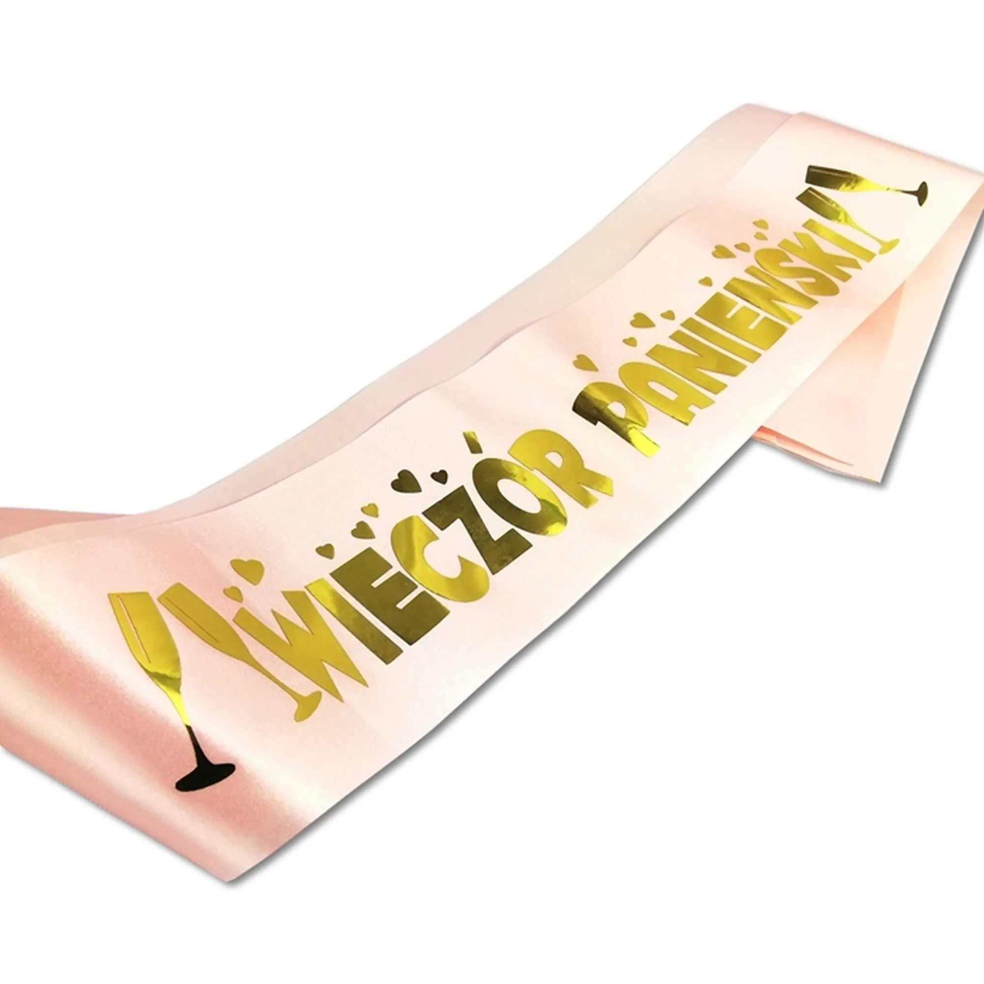 Szarfa na Wieczór Panieński w kolorze różowym z złotymi napisami, satynowa elegancja