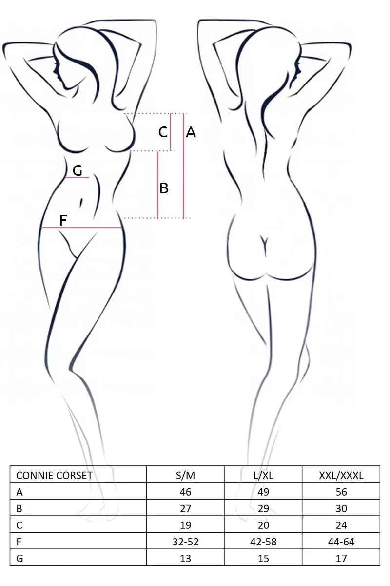 Gorset został zaprojektowany z myślą o maksymalnym komforcie użytkowania. Posiada regulowane ramiączka, co umożliwia dostosowanie go do indywidualnych potrzeb. Dodatkowo, użyta specjalna guma ramiączkowa, typowa dla biustonoszy, zapewnia stabilność i wsparcie w kluczowych miejscach. Regulowane zapięcia do pończoch pozwalają na ich łatwe przypięcie, co czyni ten gorset idealnym wyborem dla eleganckich i stylowych strojów.