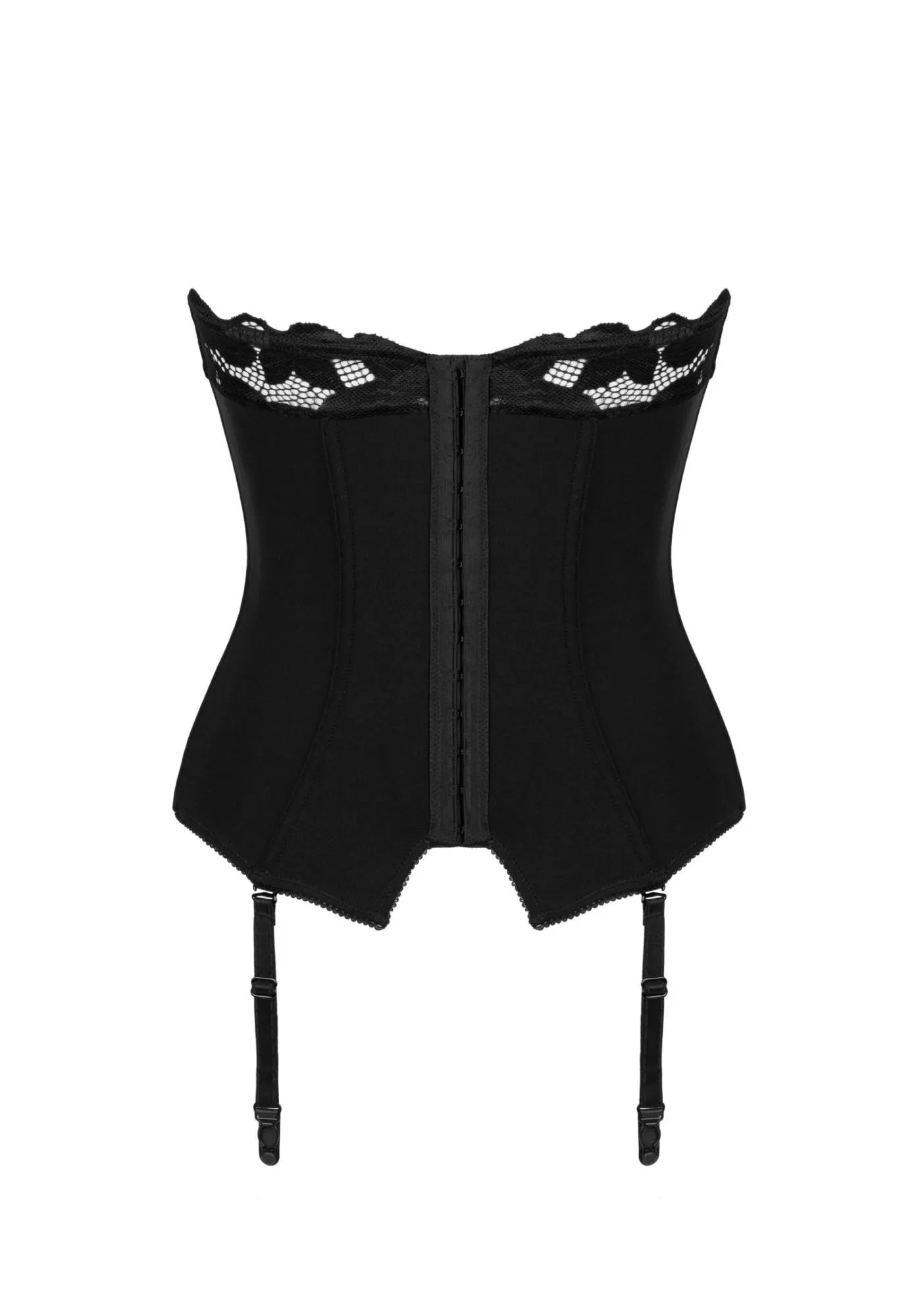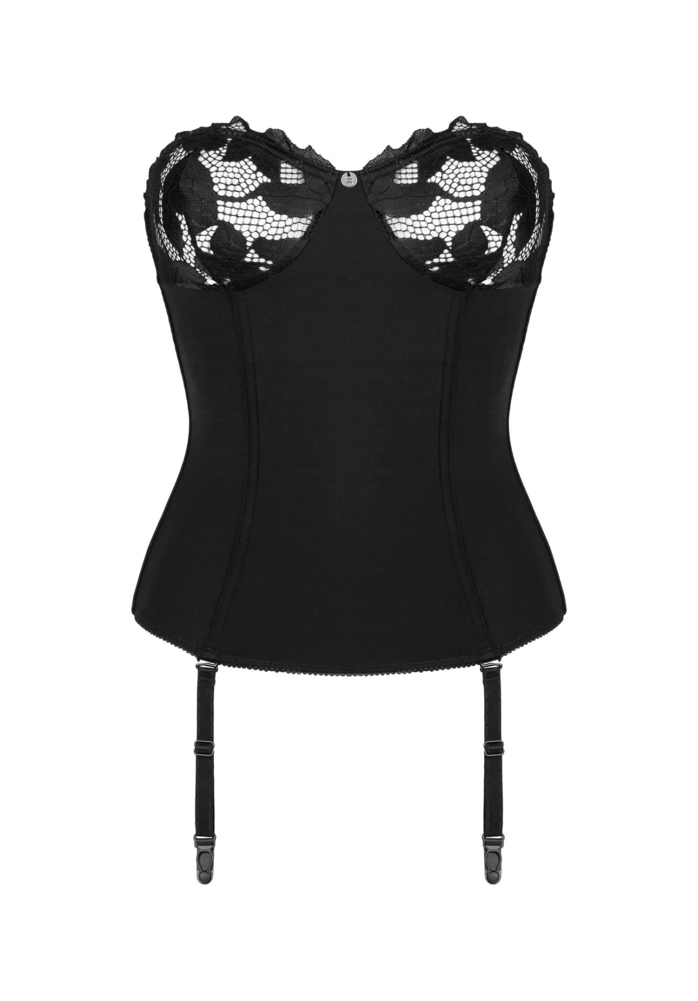 Gorset Editya to wyrafinowany element odzieży, który w doskonały sposób łączy subtelność i zmysłowość. Wykonany z wysokiej jakości materiałów, ten czarny gorset z fiszninami ma na celu podkreślenie naturalnych kształtów sylwetki. Zastosowanie miękkich, lekko prześwitujących miseczek biustonosza sprawia, że biust jest atrakcyjnie eksponowany, a jednocześnie zachowuje komfort noszenia. Dzięki pionowym fiszbinom, gorset idealnie modeluje sylwetkę, nadając jej elegancki i wysublimowany wygląd.
