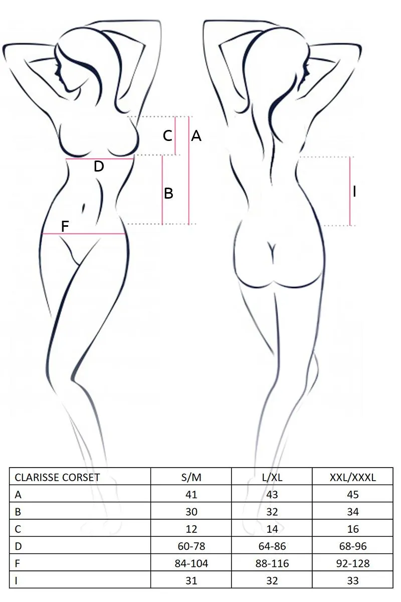 Elegancki gorset koronkowy CLARISSE w klasycznym czarnym kolorze to doskonały wybór dla kobiet pragnących podkreślić swoją seksowność i zmysłowość. Wykonany z wysokiej jakości materiałów, takich jak delikatna i elastyczna satyna oraz finezyjna koronka, gorset doskonale układa się na ciele, eksponując atuty sylwetki. Ramiączka, które można regulować, zapewniają idealne dopasowanie, co przekłada się na komfort noszenia.