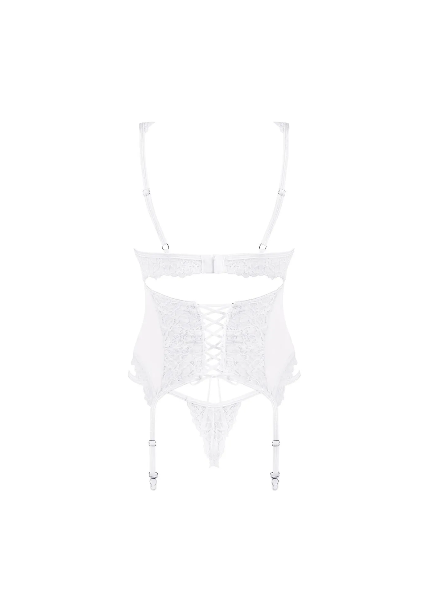 W zestawie z gorsetem otrzymasz stringi, co czyni ten produkt kompletnym zestawem bielizny idealnym na specjalne okazje. Materiały, z których wykonano ten elegancki gorset (95% poliester, 5% elastan), zapewniają miłe odczucia w kontakcie z skórą oraz trwałość. Nie czekaj, zamów gorset Amor Blanco i wzbogać swoją bieliźnianą kolekcję o ten jedyny w swoim rodzaju element.