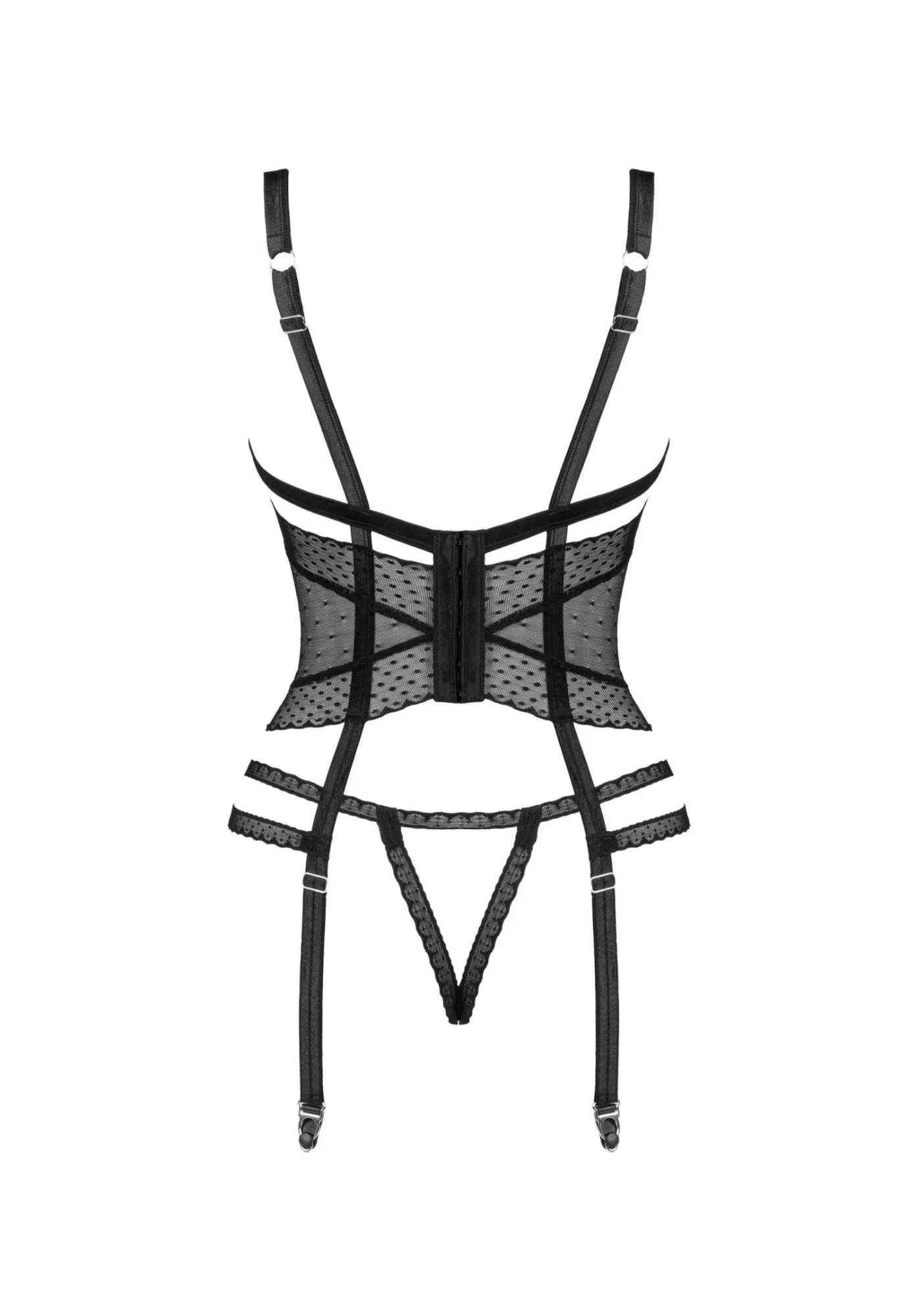 Gorset Lanelia OBSESSIVE to doskonałe połączenie seksowności i klasy, które wprowadzi powiew świeżości do każdej romantycznej chwili. Wykonany z delikatnej, prześwitującej siateczki, ten wyjątkowy gorset podkreśla kobiece kształty, sprawiając, że każda osoba nosząca go poczuje się nie tylko atrakcyjnie, ale także pewnie. Dzięki otwartemu krojowi, możesz liczyć na intensyfikację przyjemności, co czyni ten model idealnym do spełniania zmysłowych fantazji.