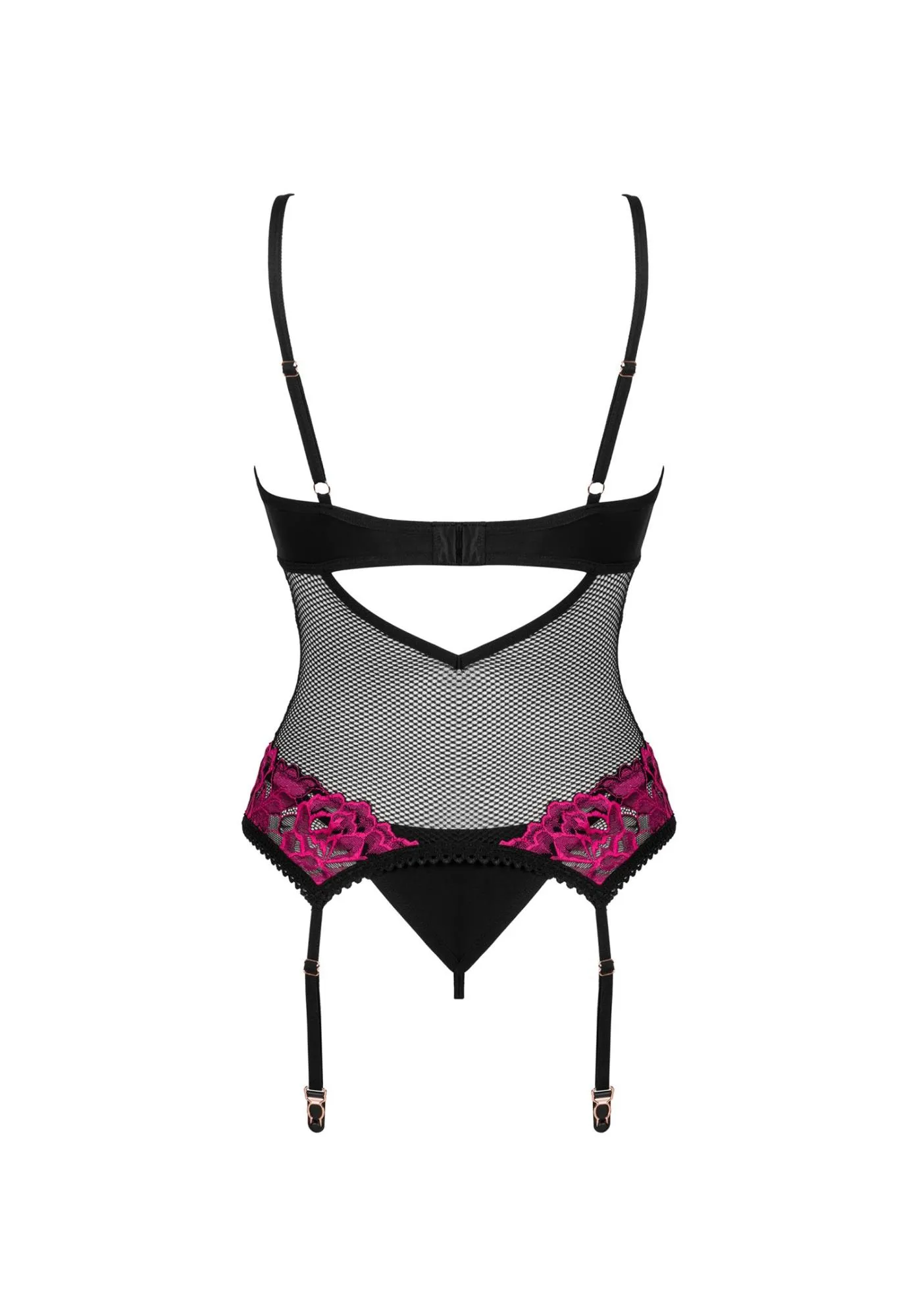 Przyciągający wzrok kwiatowy wzór w połączeniu z delikatną siateczką sprawia, że gorset Rosenty to nie tylko element bielizny, ale także wyjątkowy akcent Twojej mody. Fiszbiny umieszczone w gorsecie dodają fasonowi elegancji, a także optycznie uniesie biust, co z pewnością zwróci uwagę. Dodatkowo, subtelna zawieszka to elegancki detal, który podkreśli całość stylizacji.