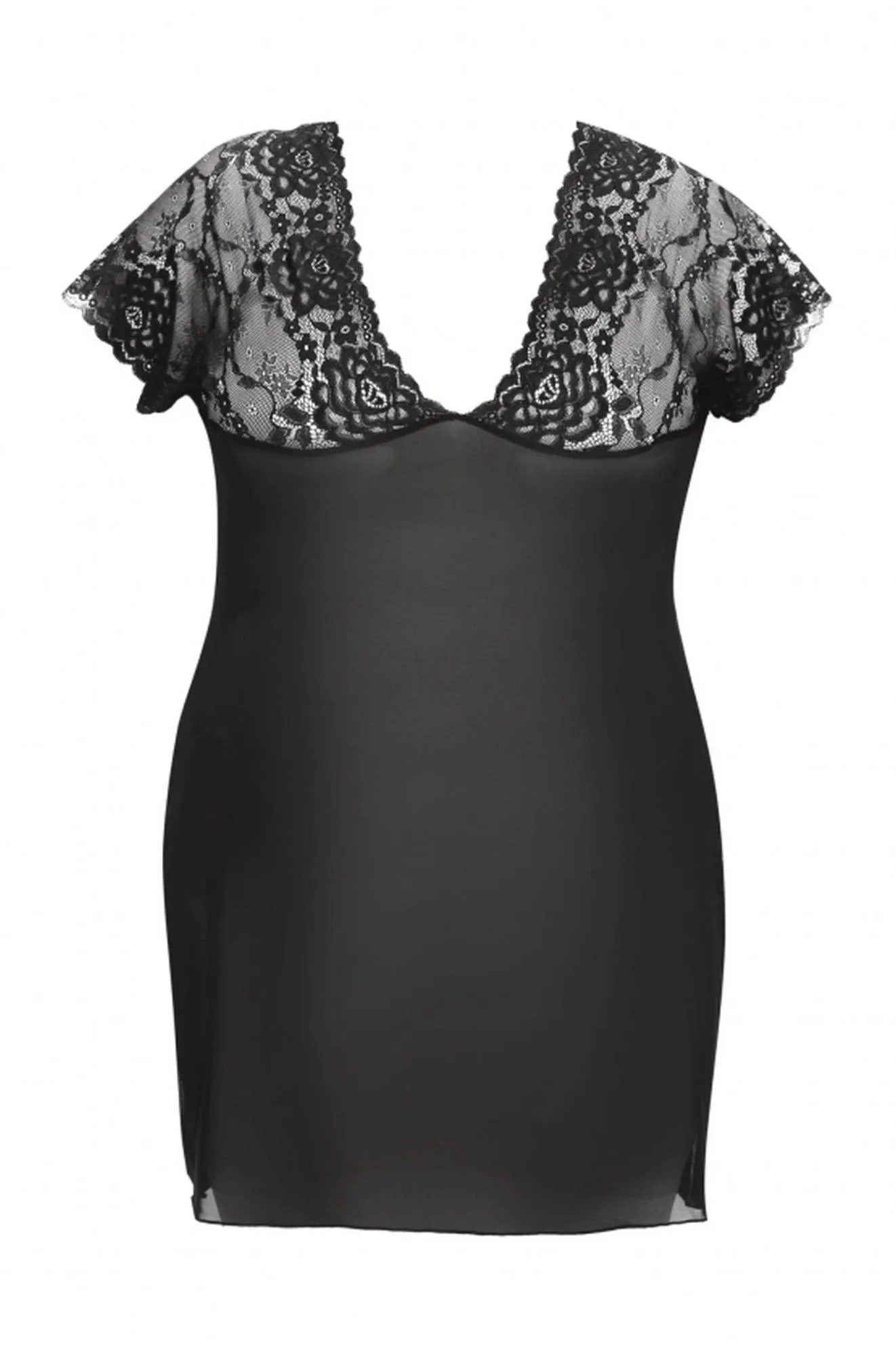 Haleczka wyróżnia się subtelnym krojem, który podkreśla atuty sylwetki, jednocześnie maskując ewentualne niedoskonałości. Koronkowe rękawki dodają jej elegancji, podczas gdy zmysłowy dekolt sprawia, że całość nabiera wyrazistego charakteru. To idealny wybór na romantyczne wieczory oraz przyjemne noce samotności.