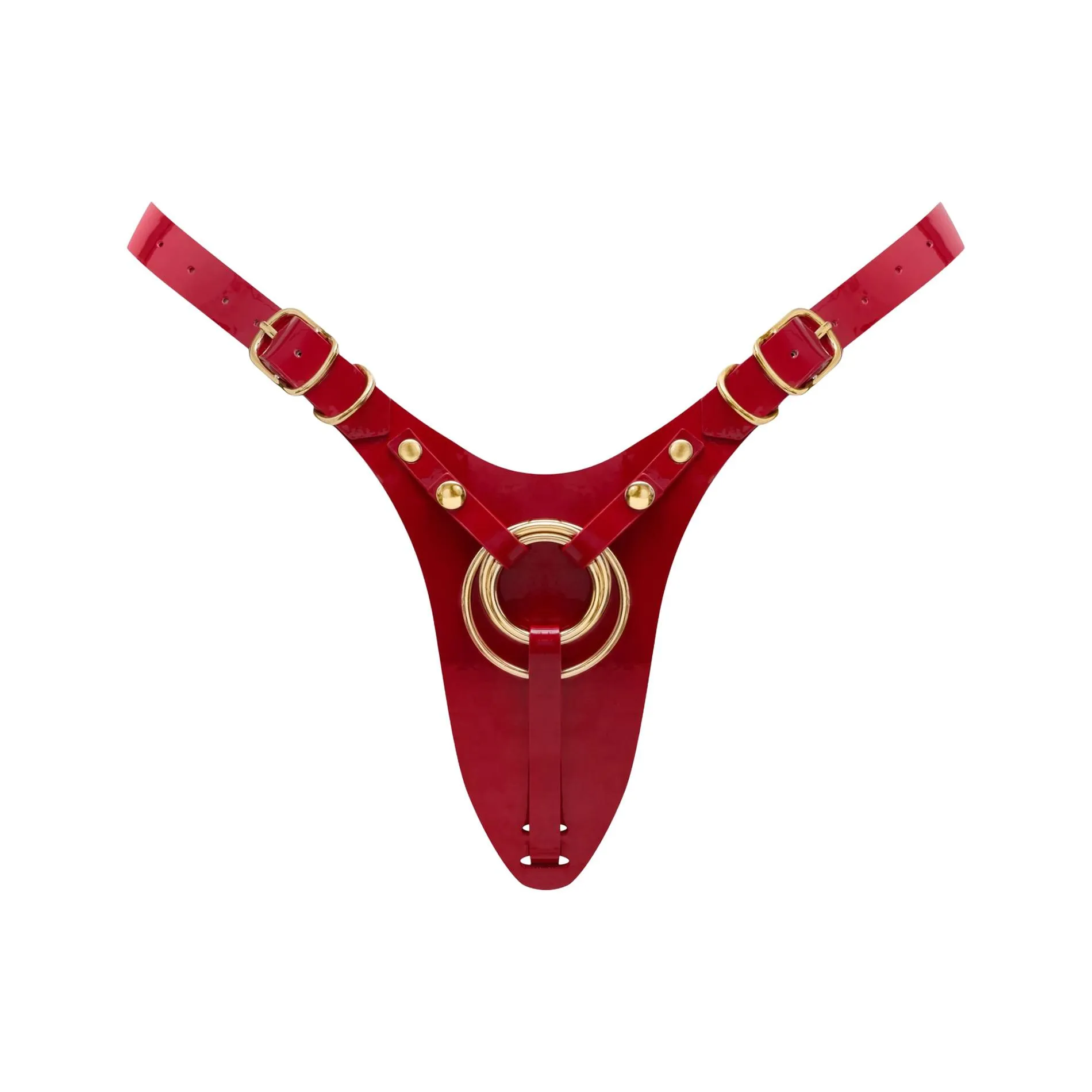 Harnais erotyczny Fabulous to odważny i zmysłowy dodatek, który łączy w sobie modę, elegancję oraz funkcjonalność. Wykonany z ekologicznej skórki, model ten przyciąga wzrok błyszczącym wykończeniem o efekcie lakieru, które subtelnie podkreśla sylwetkę, dodając odrobiny pikanterii do każdej stylizacji. Wysoka talia i stringi tworzą intrygujący kształt, który z całą pewnością zachwyci niejednego miłośnika bądź miłośniczki oryginalnych akcesoriów do strefy intymnej.
