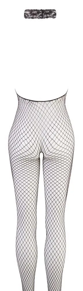 Ten czarny garnitur wyróżnia się przezroczystością od szyi aż po palce, co dodaje mu zmysłowego charakteru. Koronkowy kołnierz wprowadza element subtelnej elegancji, a małe otwarcie w kroku zapewnia odrobinę zaskoczenia i figlarności. Oferuje to idealny balans pomiędzy wyrafinowaniem a ekscytacją, sprawdzając się doskonale zarówno na specjalne okazje, jak i w czasie relaksu w domowym zaciszu.