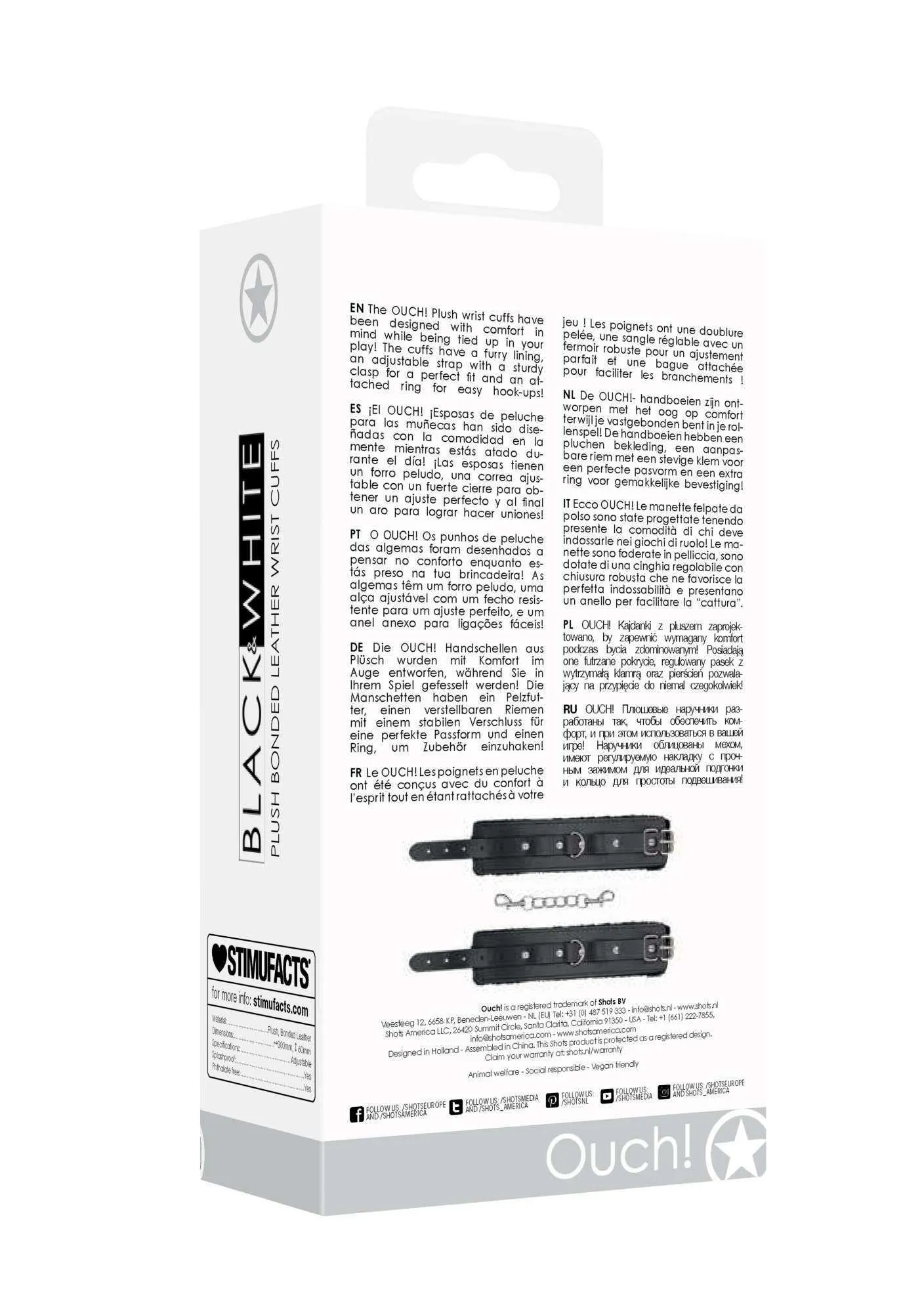 Wymiary produktu to 30 x 6 x 5,2 cm przy wadze 97 gram. Opakowanie ma natomiast wymiary 17 x 9 x 5 cm i waży 130 gram. Kajdanki wykonane są z wysokiej jakości pluszu i skóry, co czyni je zarówno trwałymi, jak i stylowymi. Dodatkowo ich średnica wynosi 5,2 cm, co zapewnia uniwersalność i dopasowanie do różnych rozmiarów nadgarstków. Oferowane przez nas kajdanki to idealny wybór dla osób, które pragną eksplorować nowe doznania w bezpieczny i komfortowy sposób.