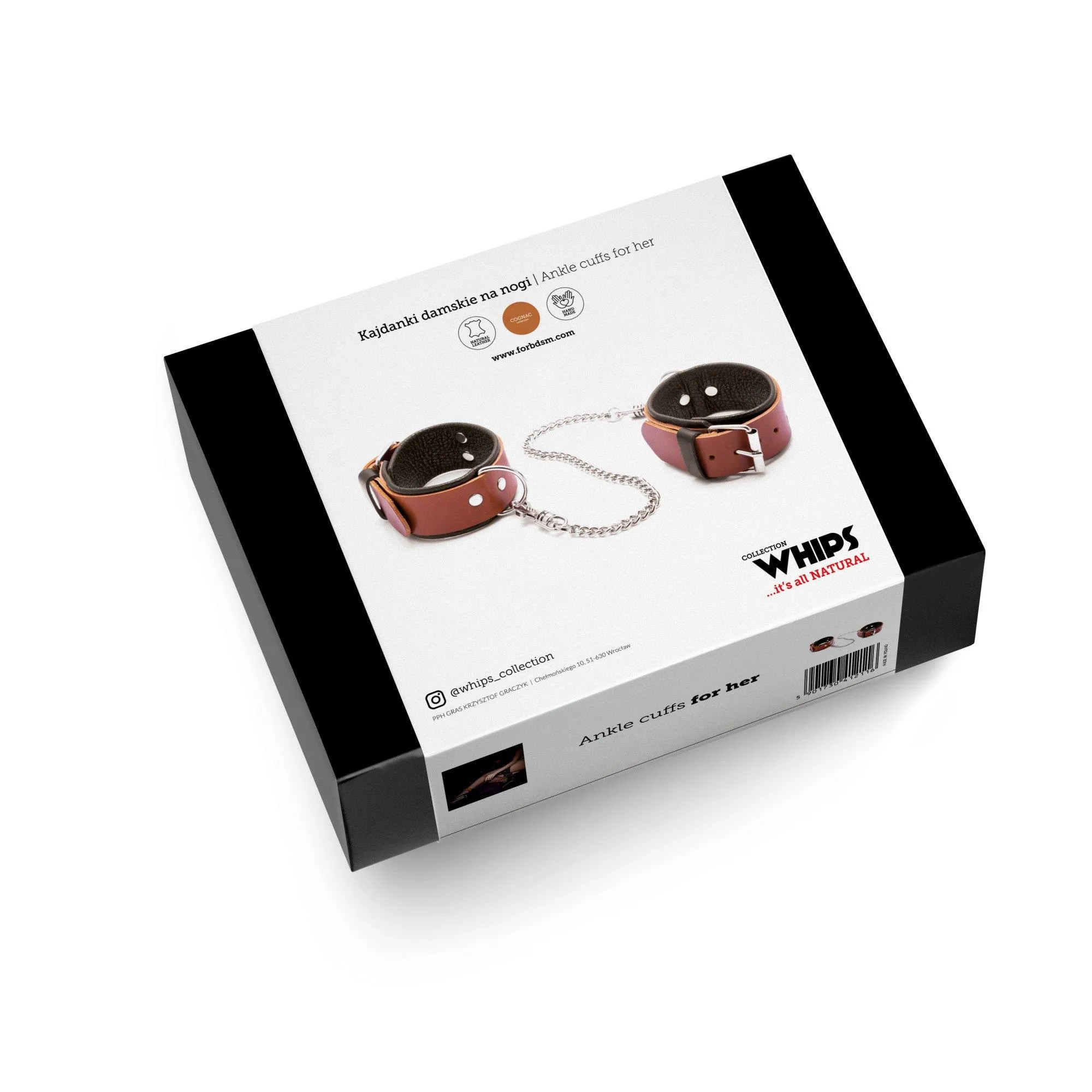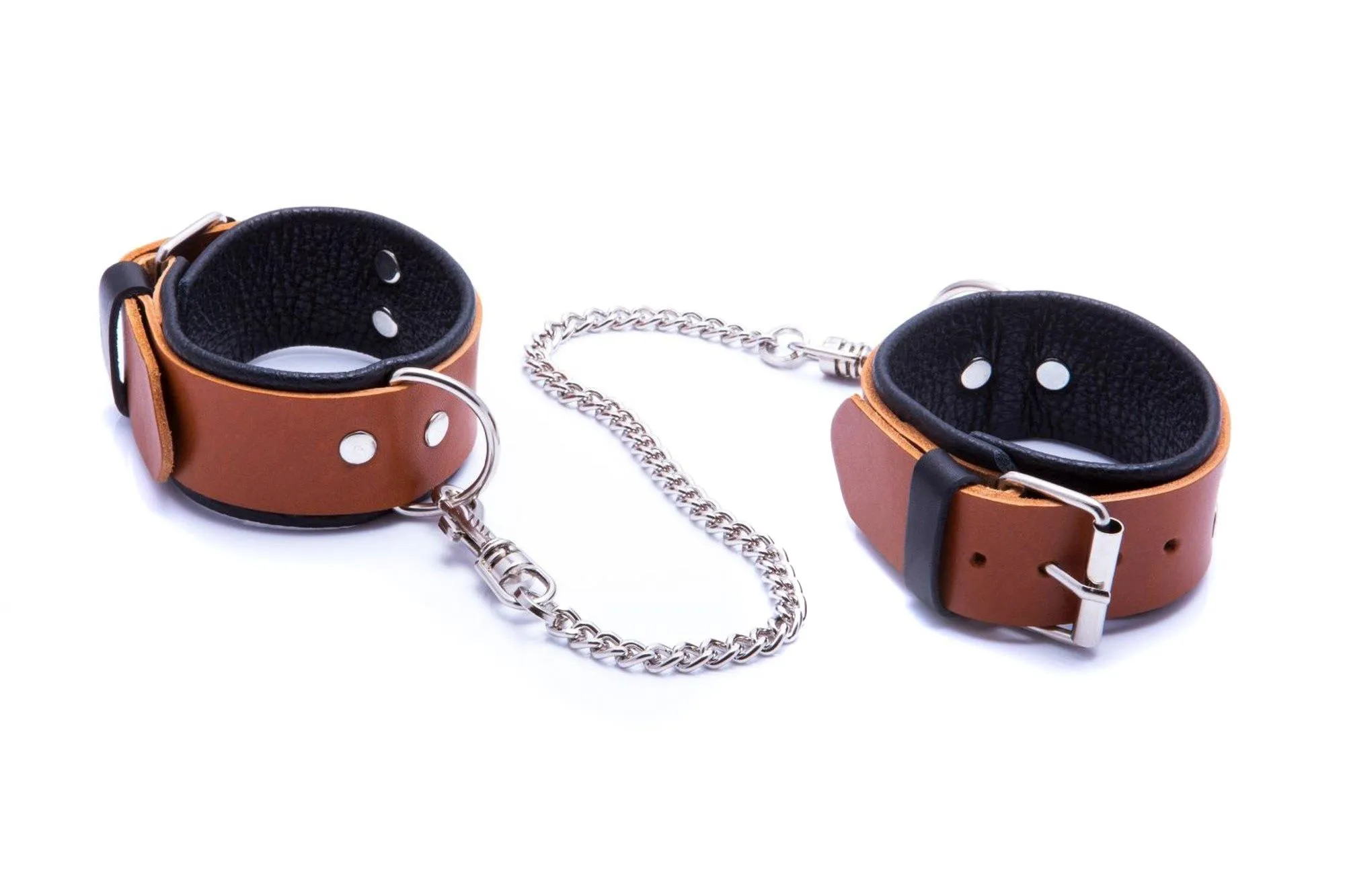 Kajdanki skórzane Kajdanki-WHIPS to wyjątkowy produkt dedykowany tym, którzy poszukują nie tylko estetyki, ale również funkcjonalności. Wykonane z naturalnej skóry bydlęcej, te damskie kajdanki w kolorze koniakowym zapewniają niepowtarzalny styl oraz wygodę noszenia. Ich długość łańcuszka wynosi 40 cm, co sprawia, że idealnie przylegają do ciała, a jednocześnie dają możliwość swobodnego ruchu.