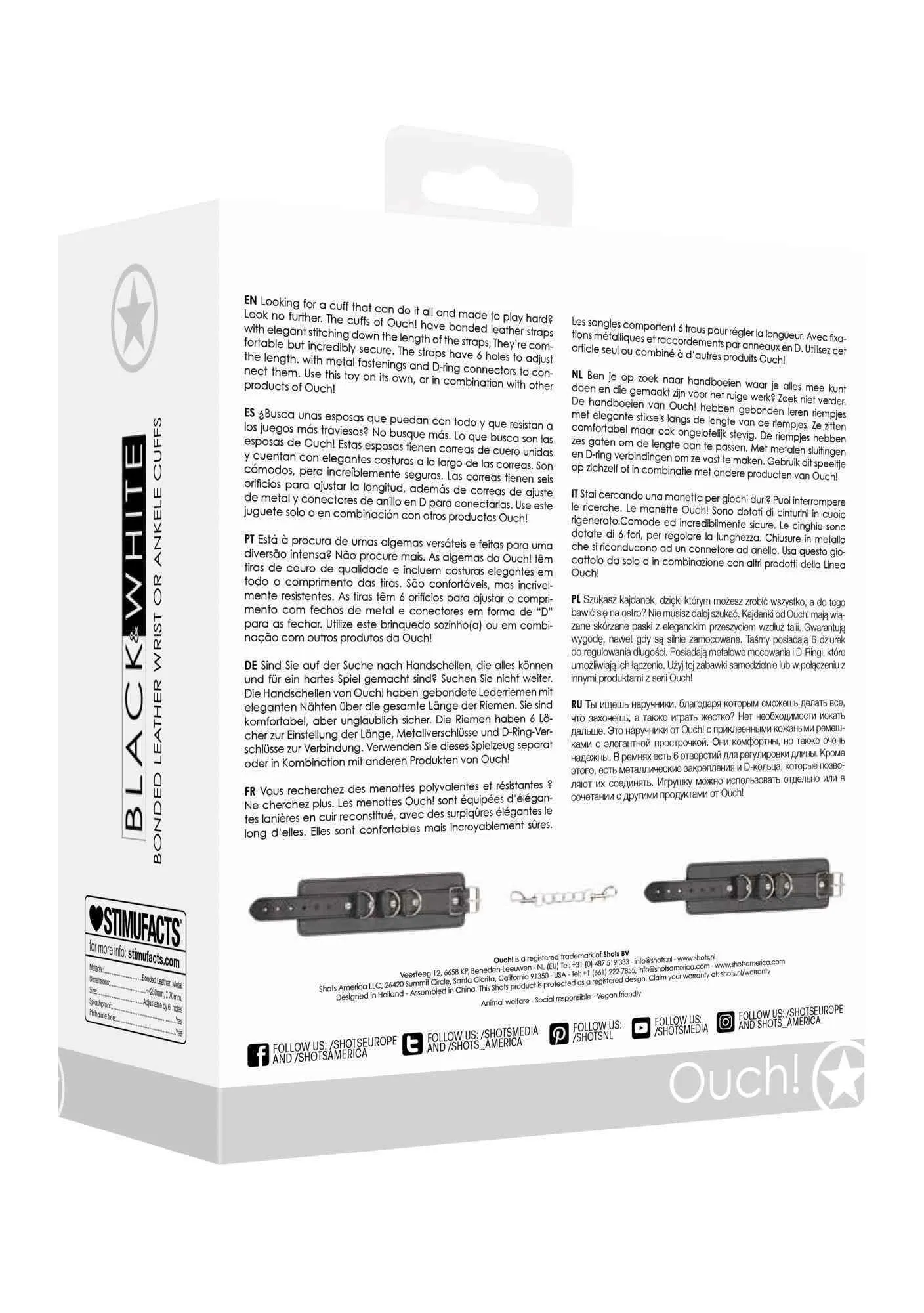 Kajdanki wyposażone są w metalowe mocowania oraz D-Ringi, które umożliwiają ich łatwe łączenie z innymi akcesoriami z serii Ouch!. To idealne rozwiązanie dla osób, które pragną eksperymentować i wzbogacać swoje doświadczenia o dodatkowe elementy. Ich minimalistyczny design sprawia, że pasują do różnych stylizacji, a solidna konstrukcja zapewnia trwałość nawet przy intensywnym użytkowaniu.