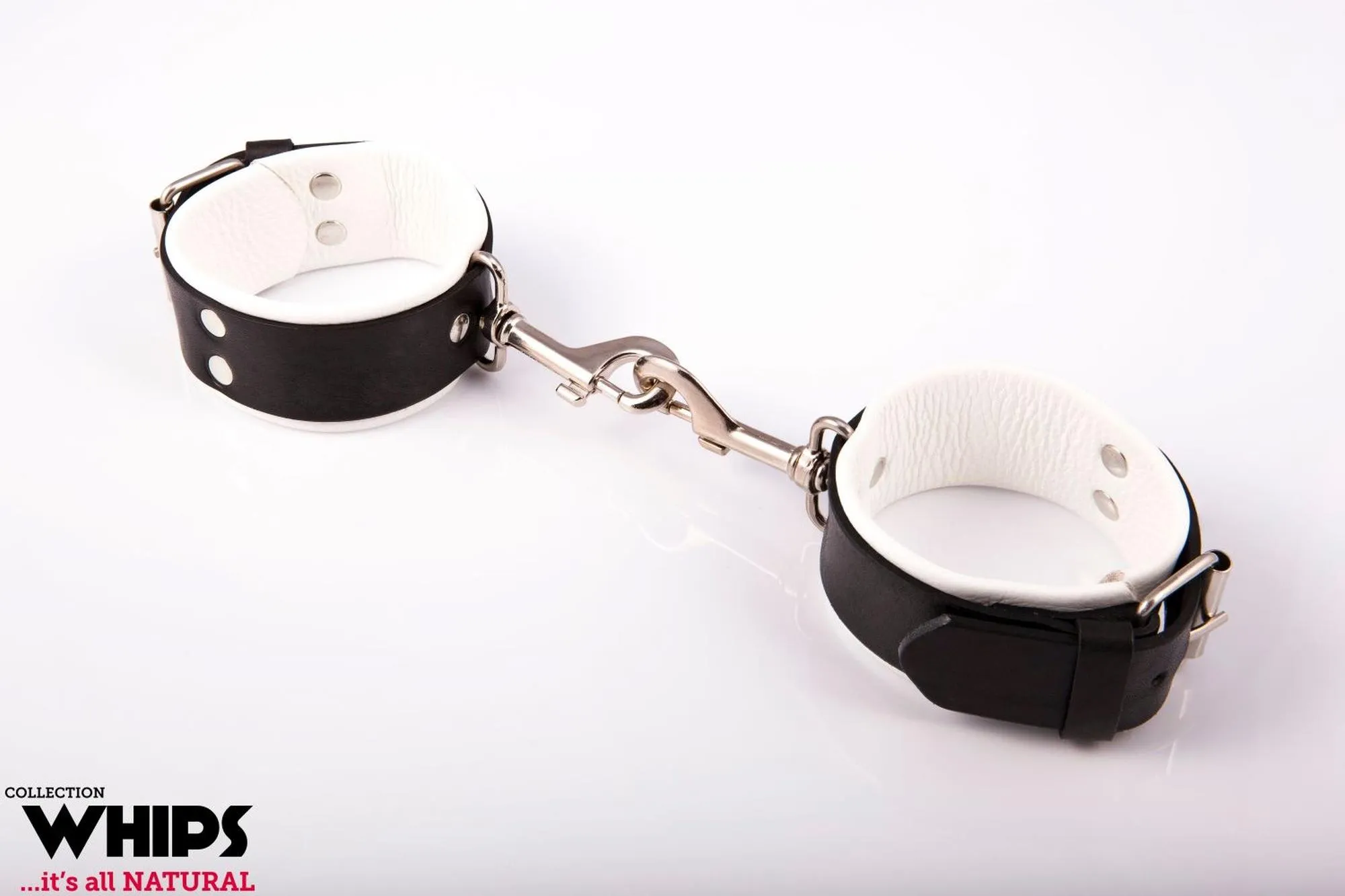 Kajdanki WHIPS to wyjątkowe skórzane kajdanki męskie, które łączą w sobie zarówno elegancję, jak i funkcjonalność. Wykonane z naturalnej skóry bydlęcej, dostępne w eleganckim białym kolorze z kontrastującymi czarnymi akcentami, oferują idealne połączenie nowoczesnego designu oraz klasycznego rzemiosła. Dzięki masywnym klamrom, te regulowane kajdanki zapewniają doskonałe dopasowanie do ciała, gwarantując komfort i bezpieczeństwo noszenia.