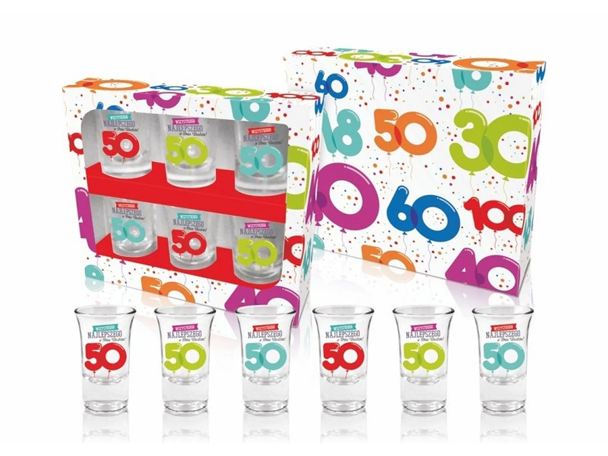 Kieliszki do wódki URODZINOWE LITERKI to idealny wybór dla tych, którzy pragną uczcić urodziny w wyjątkowy sposób. W zestawie znajdują się 6 zdobionych kieliszków, które łączą elegancję z radosnym designem. Każdy kieliszek o pojemności 35 ml został starannie wykonany ze szkła wysokiej jakości, co zapewnia nie tylko estetykę, ale również trwałość. Kolorowa grafika z napisem Wszystkiego najlepszego oraz liczba, reprezentująca rocznicę, nadaje im niepowtarzalny charakter.