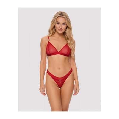 Bielizna DEMONIQ — czerwony komplet, siateczka transparentna, serduszka, regulowane ramiączka