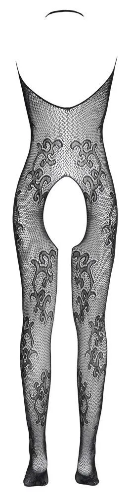 Kombinezon charakteryzuje się przejrzystą tkaniną z subtelnymi ornamentami, co dodaje mu unikalnego stylu. Elastyczne paski, które łączą się w designie halterneck, podkreślają linię dekoltu, a jednocześnie pozostawiają tył odkryty, co sprawia, że całość wygląda niezwykle seksownie. Dodatkowo, obszerny rozcięcie w kroku pozwala na intymną spontaniczność, co czyni go idealnym wyborem na wyjątkowe okazje.