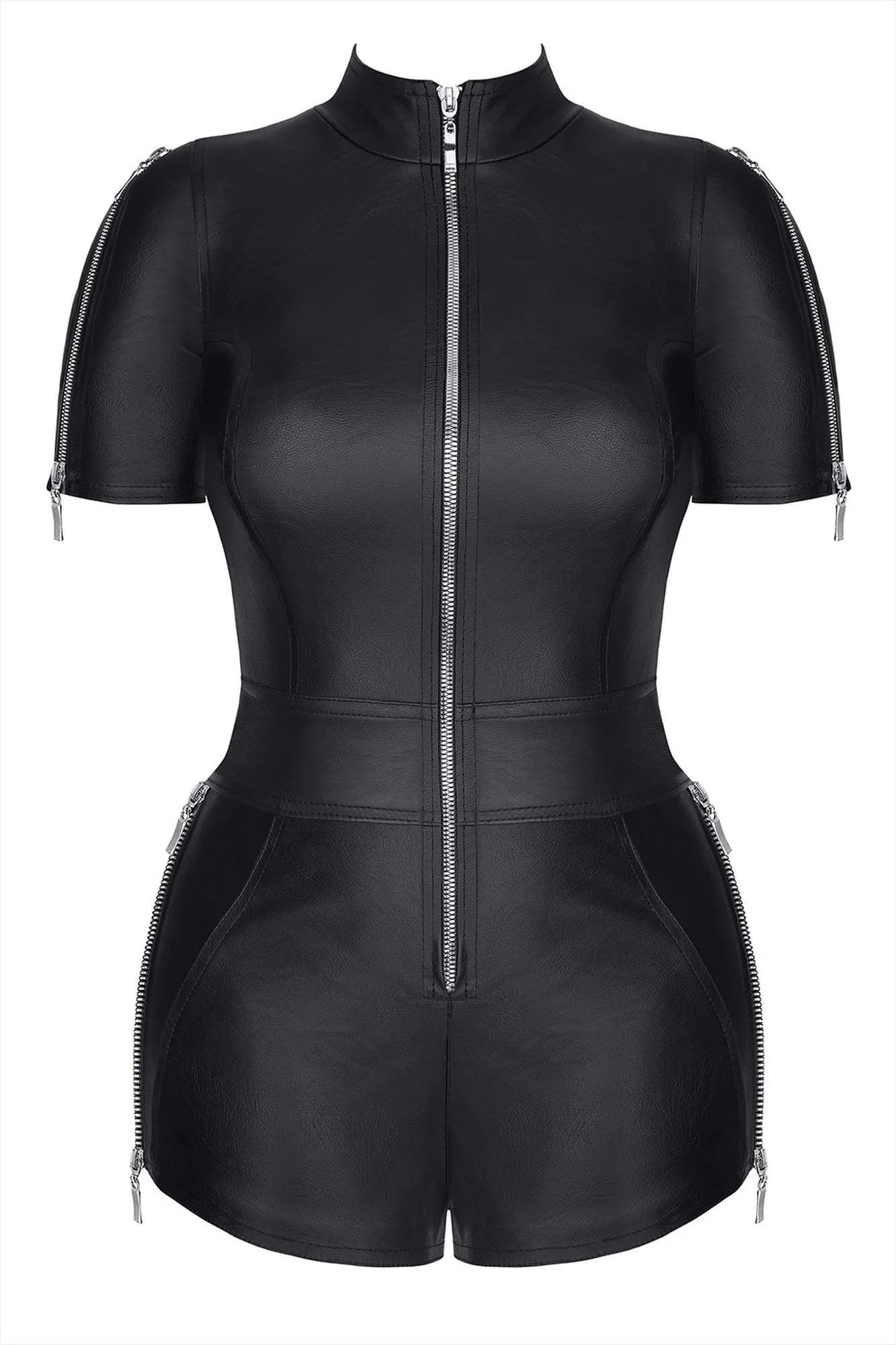 Kombinezon militarno-elegancki Marcella001 to połączenie nietuzinkowego stylu oraz elegancji. Wykonany z wyjątkowej, trwałej ekoskóry, oferuje nie tylko estetykę, ale także komfort noszenia. Model ten dostępny jest w kolorze czarnym, co sprawia, że jest niezwykle uniwersalny, idealny na różne okazje. Kombinezon w rozmiarze S, dostępny także w rozmiarach M, L, XL, XXL, podkreśla atuty sylwetki, dzięki swojej dopasowanej konstrukcji.