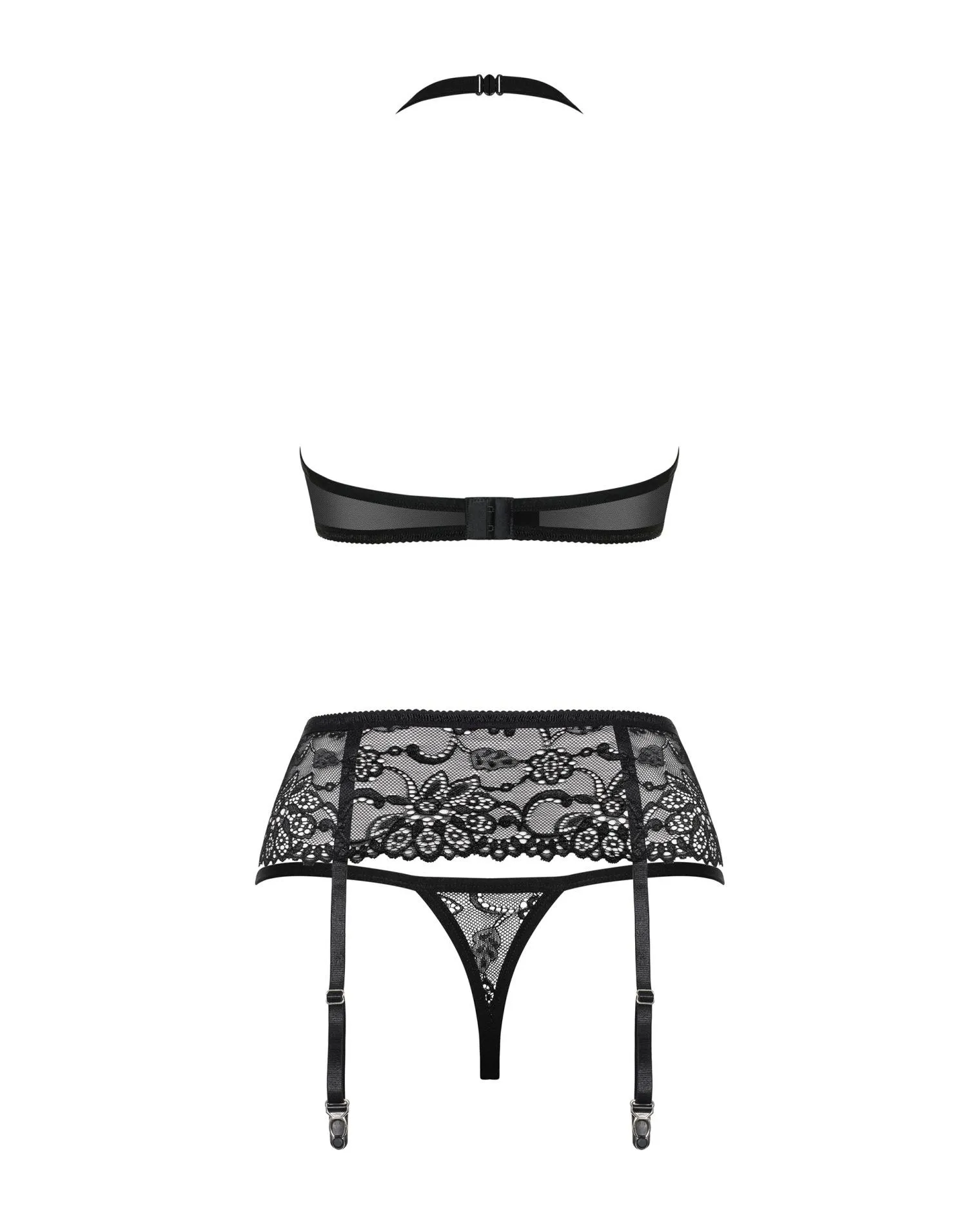 Przedstawiamy komplet 3-częściowy Bielizna-838-SEG-1, który z pewnością przyciągnie uwagę. Ten wyjątkowy zestaw w kolorze czarnym został zaprojektowany z myślą o kobietach, które pragną poczuć się szczuplejsze i bardziej uwodzicielskie. Dzięki dobrze dobranym akcesoriom, każda kobieta może wyrazić swoją seksowną stronę, co czyni ten komplet idealnym wyborem na romantyczne wieczory.