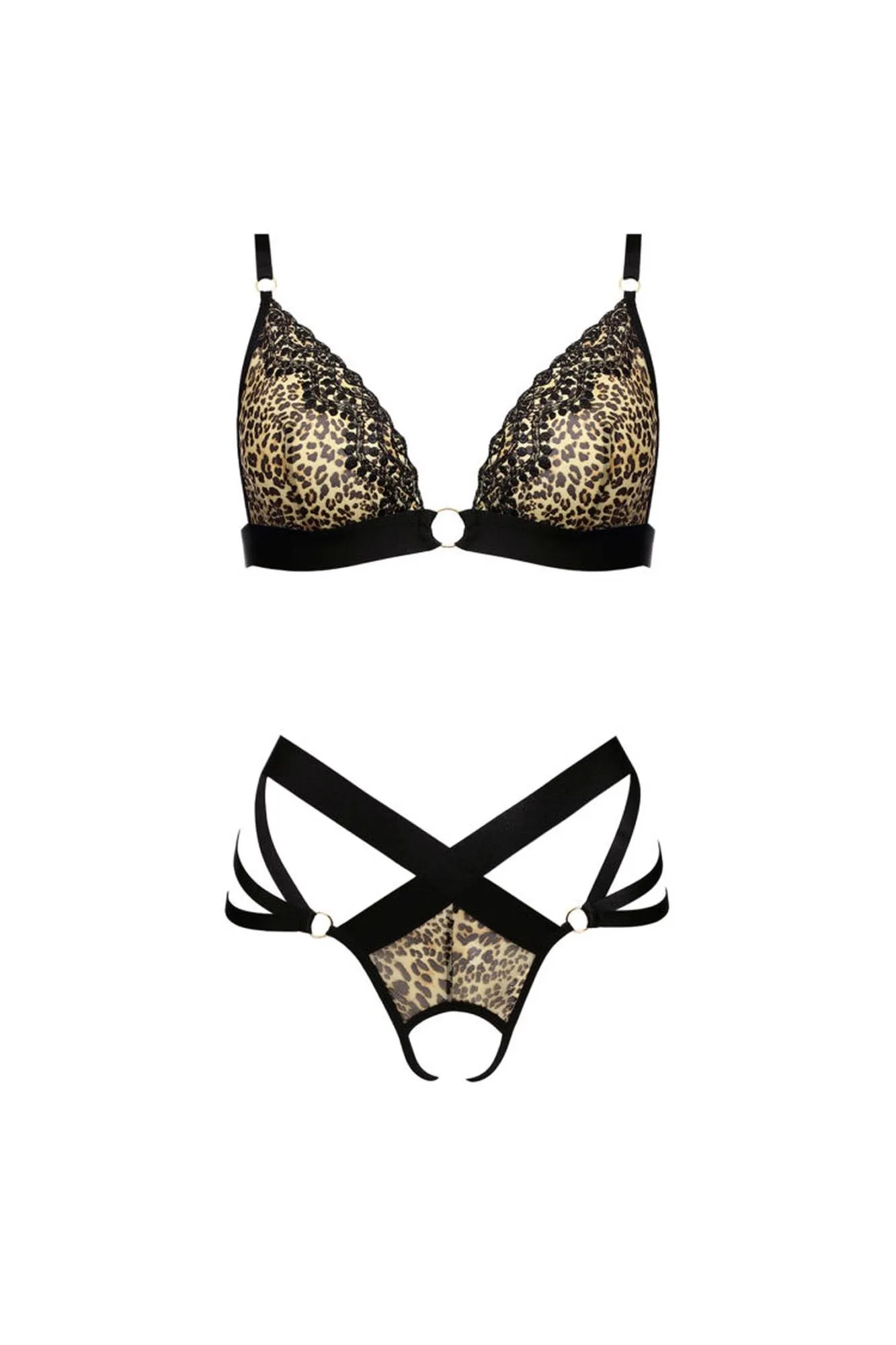 Odkryj seksowny, dwuczęściowy komplet bielizny erotycznej IZARO, stworzony z myślą o kobietach, które pragną podkreślić swoją kobiecość i zmysłowość. Wykonany z delikatnego, haftowanego tiulu, ten zestaw zdobi niebanalny wzór panterki, który z pewnością przyciągnie uwagę. Komplet składa się z biustonosza oraz majteczek typu open, co zapewnia nie tylko wygodę, ale także nutę pikanterii w intymnych chwilach.