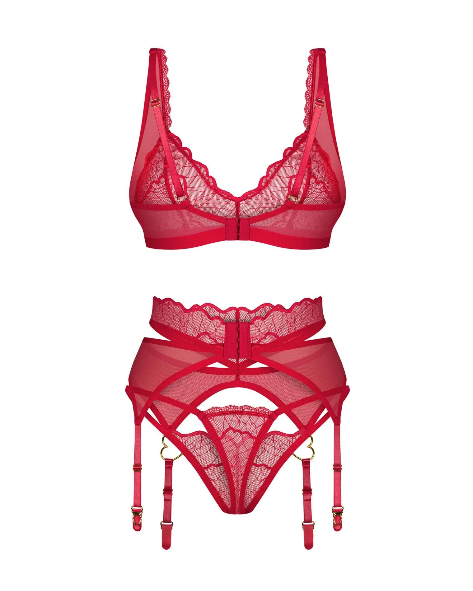 Zapewnij sobie wyjątkowy styl i niezrównaną wygodę dzięki kompletowi biustonosza, stringów i pasa do pończoch Cupide Desir w rozmiarze 2XL/3XL. Ten wyjątkowy zestaw w czerwonym kolorze to idealny wybór dla kobiet, które pragną poczuć się atrakcyjnie i pewnie siebie. Wykonany z elastycznych i przyjemnych w dotyku materiałów, zapewnia doskonałe dopasowanie do sylwetki, podkreślając jej atuty.