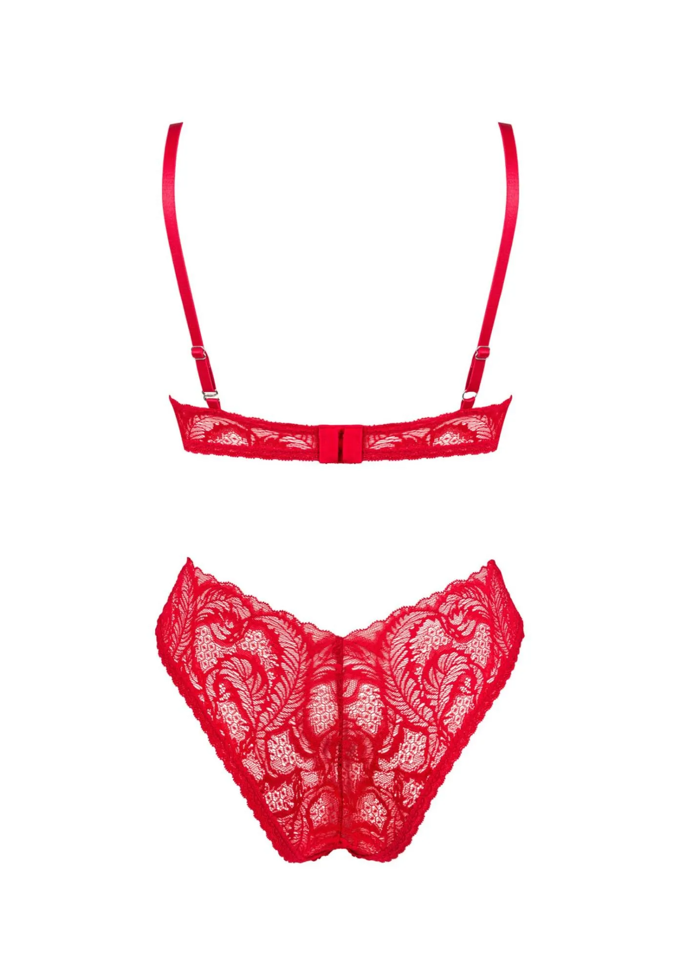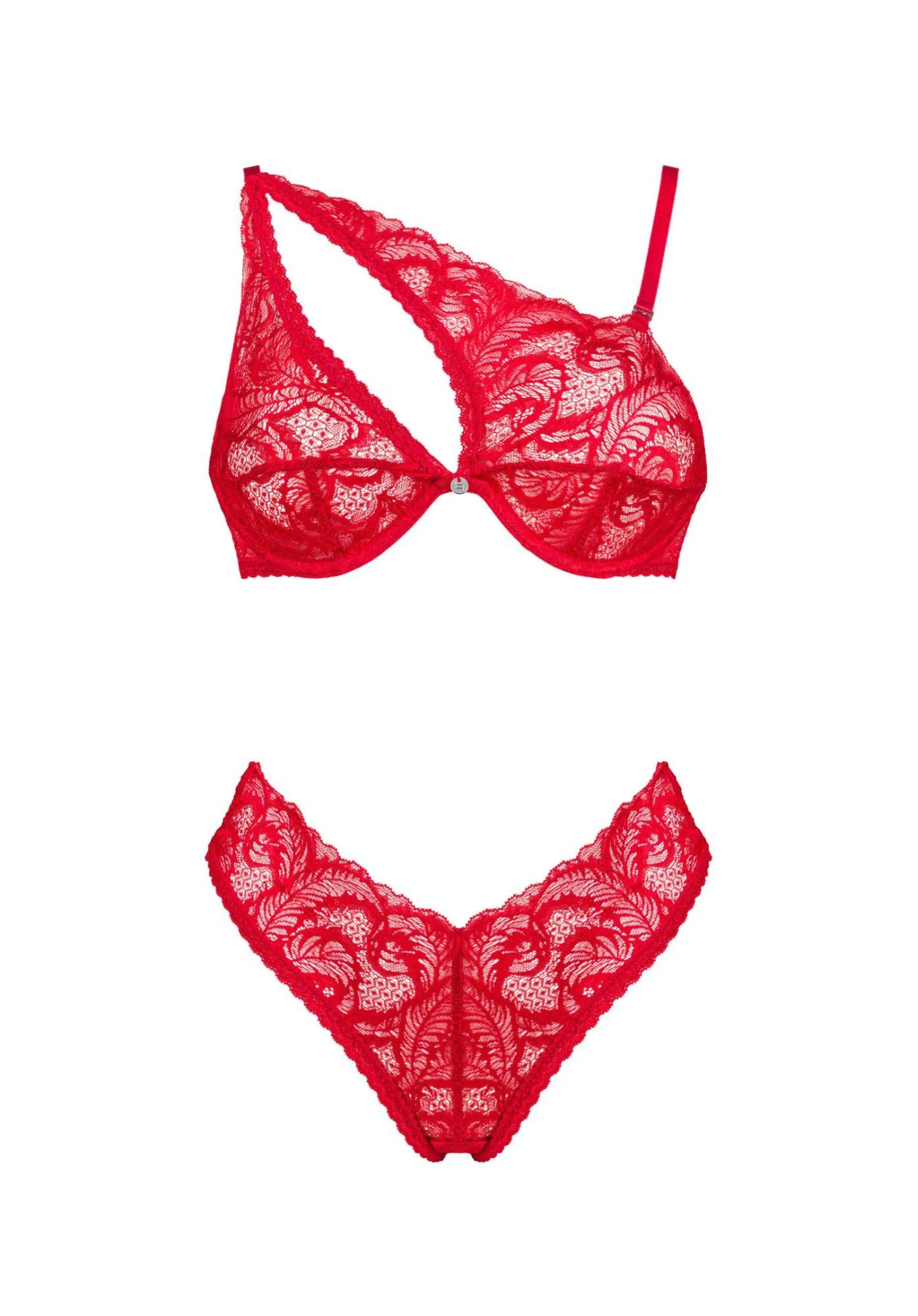 Odkryj komplet bielizny Atenica, który łączy w sobie elegancję i niezwykłą kobiecość. W skład kompletu wchodzi biustonosz z fiszbinami oraz koronkowe figi, które w zestawieniu tworzą idealną propozycję na każdą szczególną okazję. Klasyczna czerwona baza, inspirowana najnowszymi trendami mody, podkreśla atuty kobiecej sylwetki, dodając pewności siebie każdej noszącej go pani.